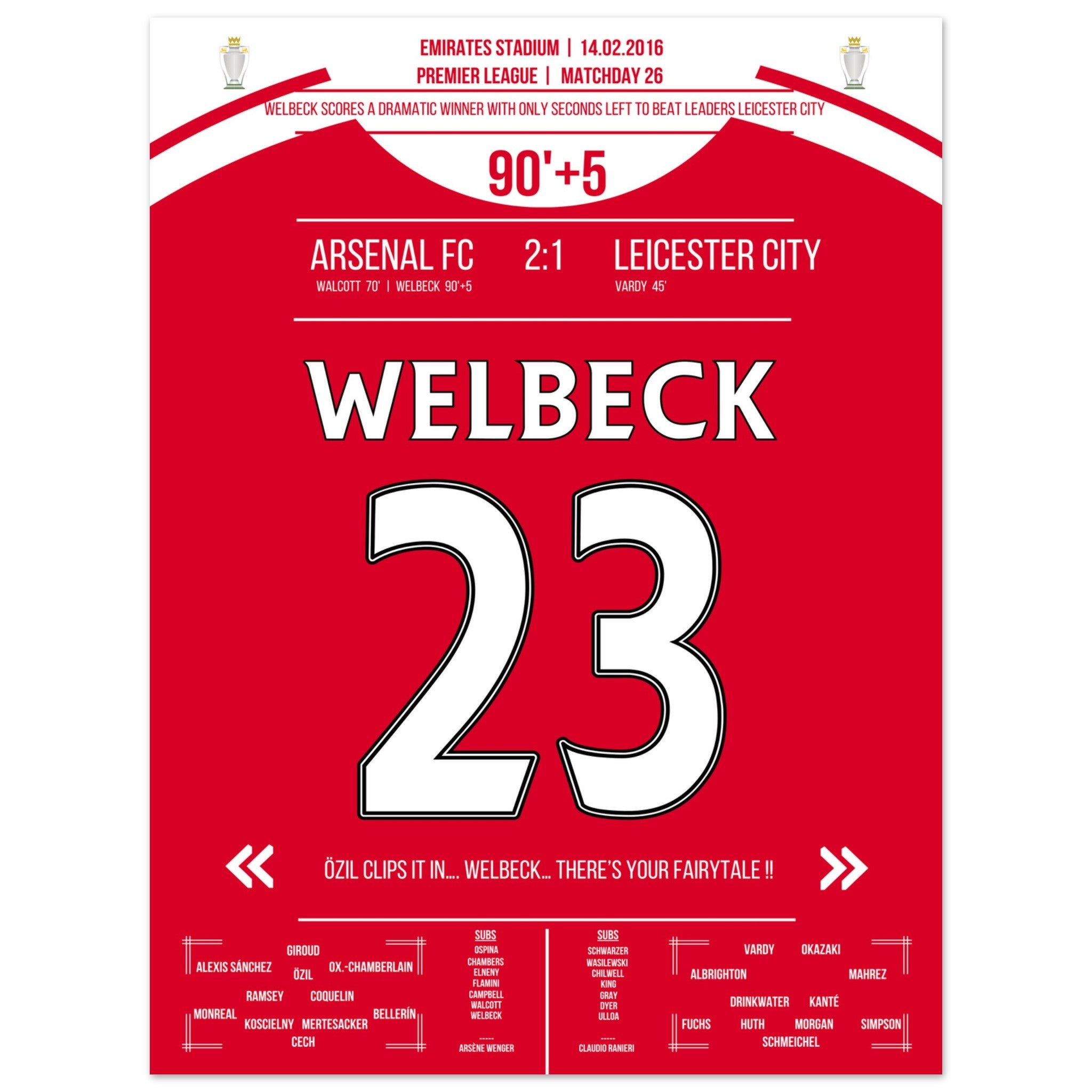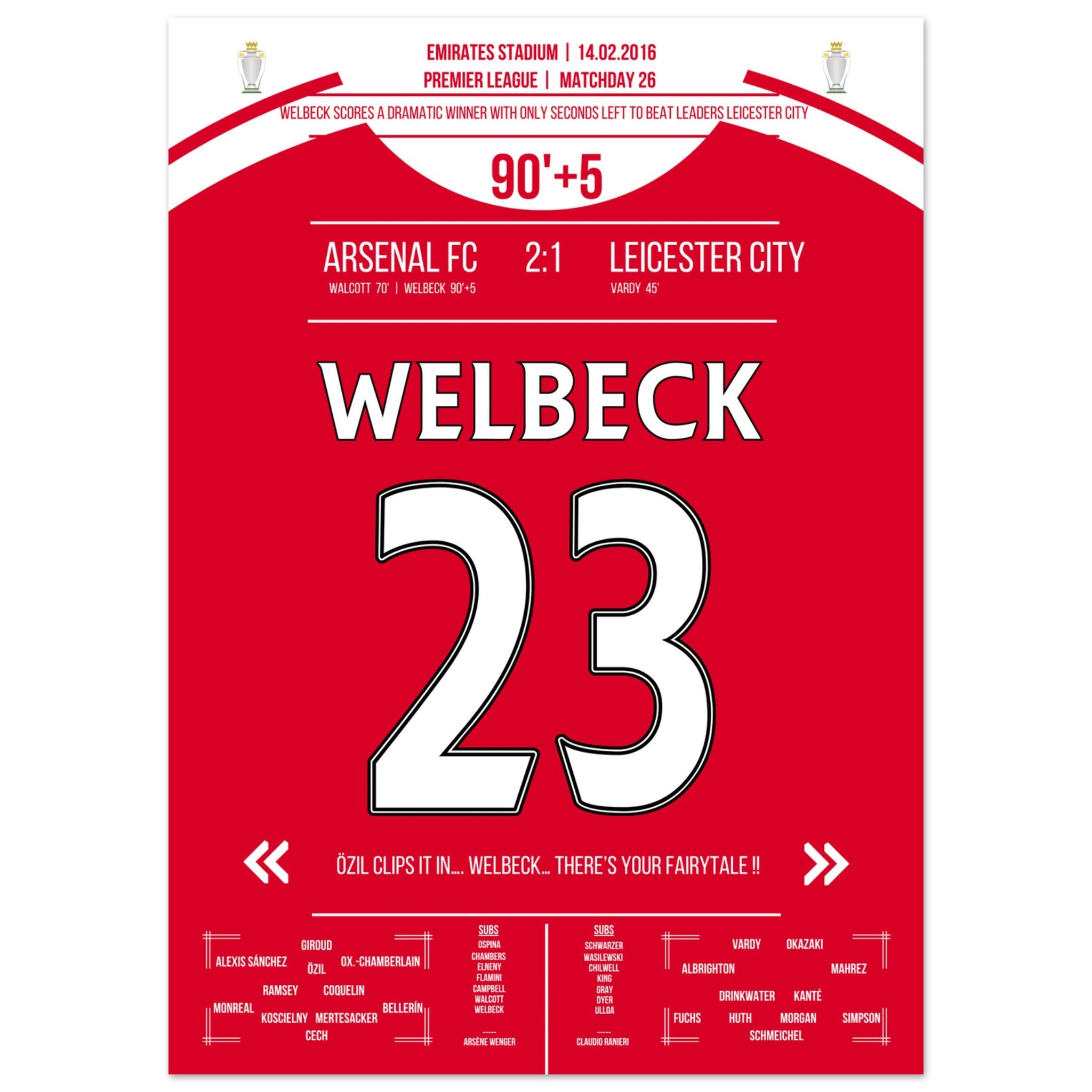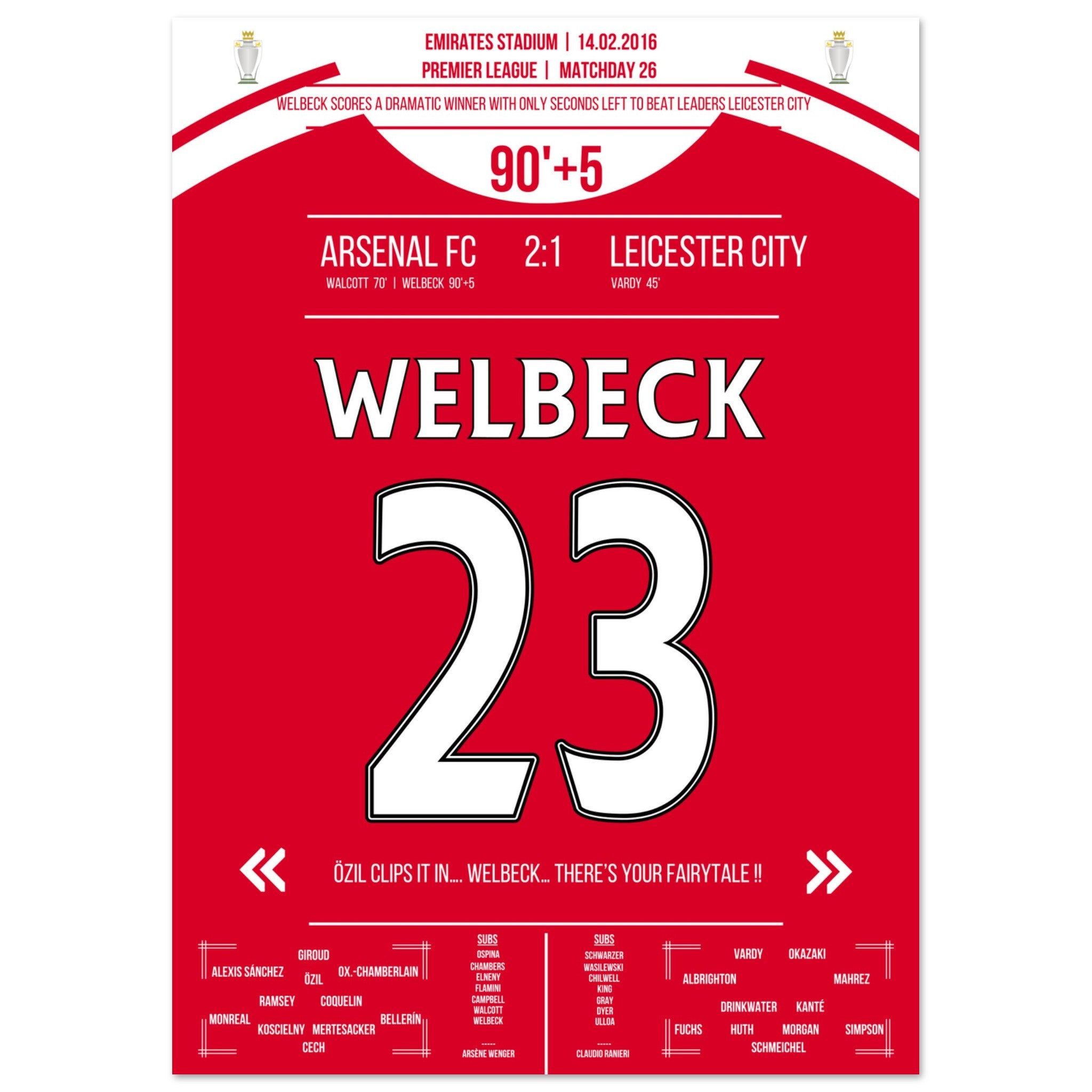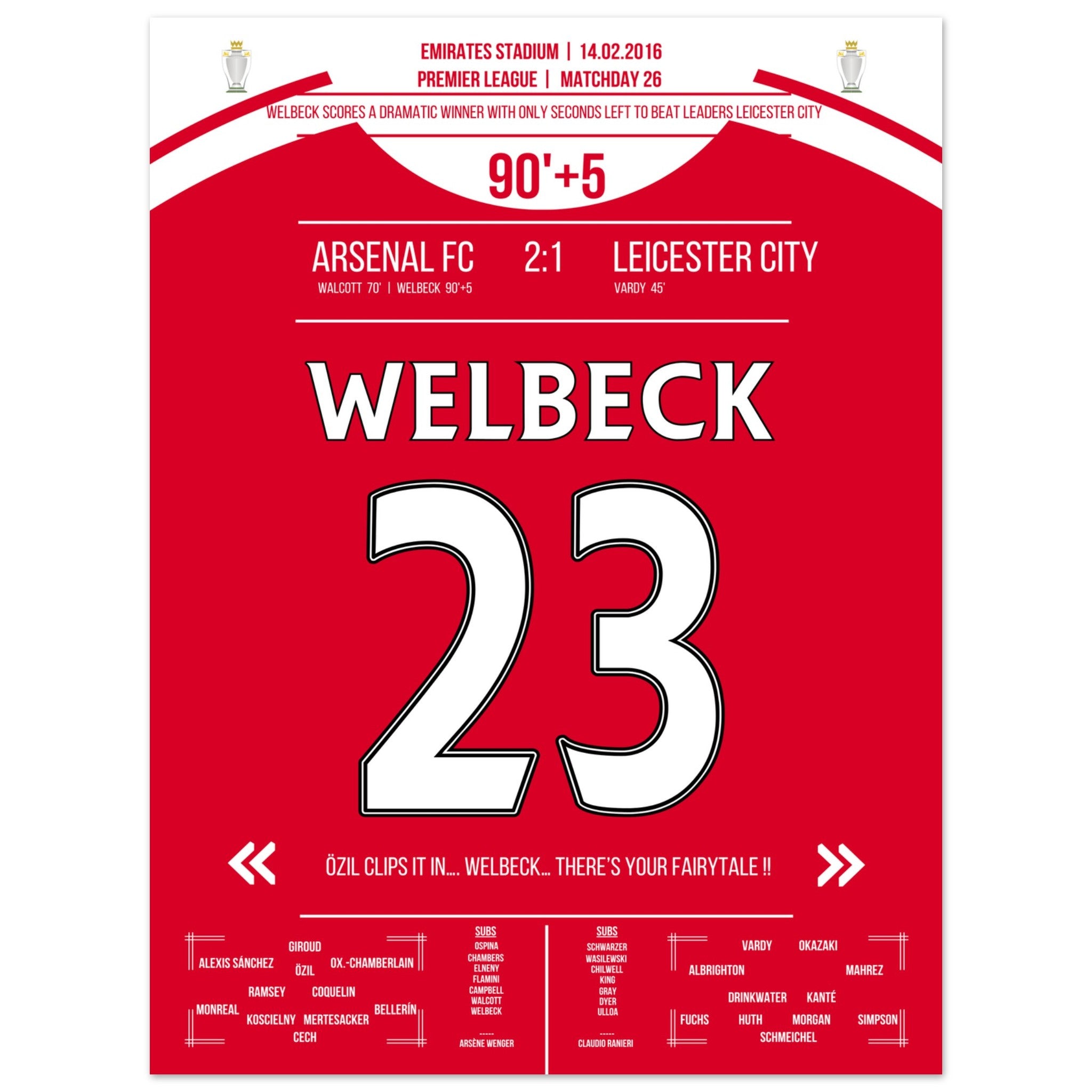 Il gol decisivo di Welbeck all'ultimo secondo contro il Leicester nel 2016