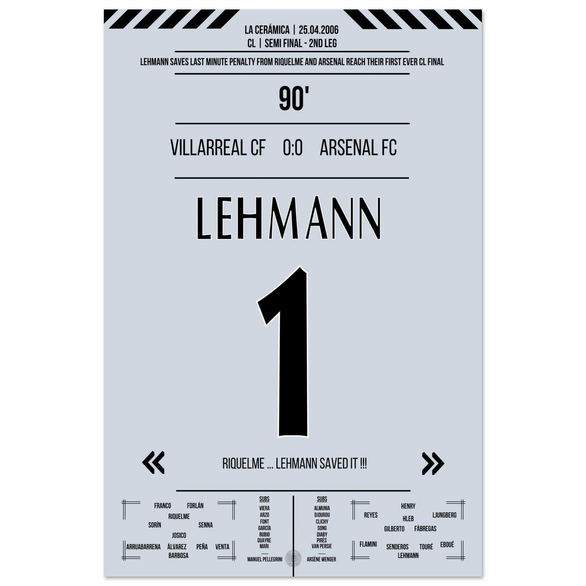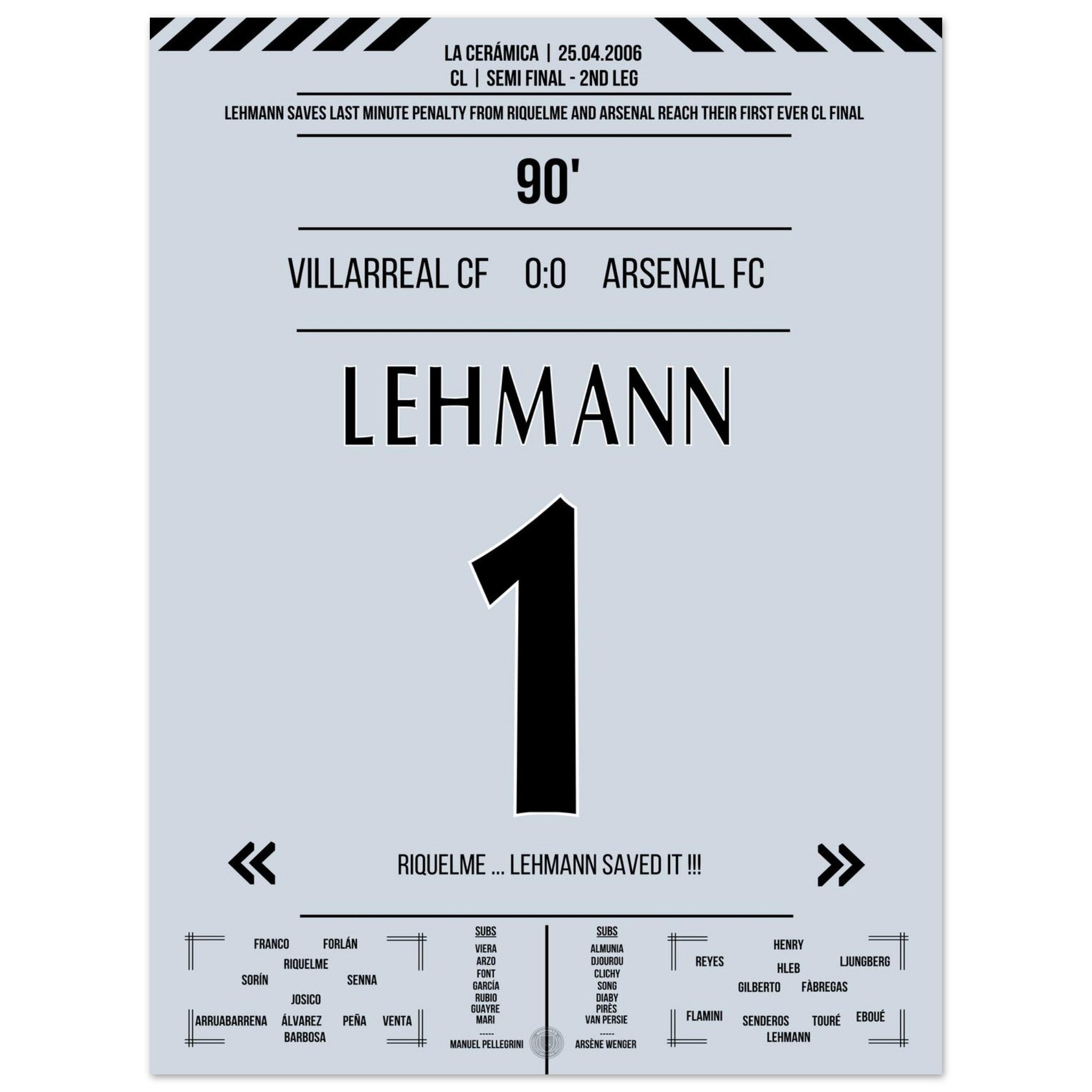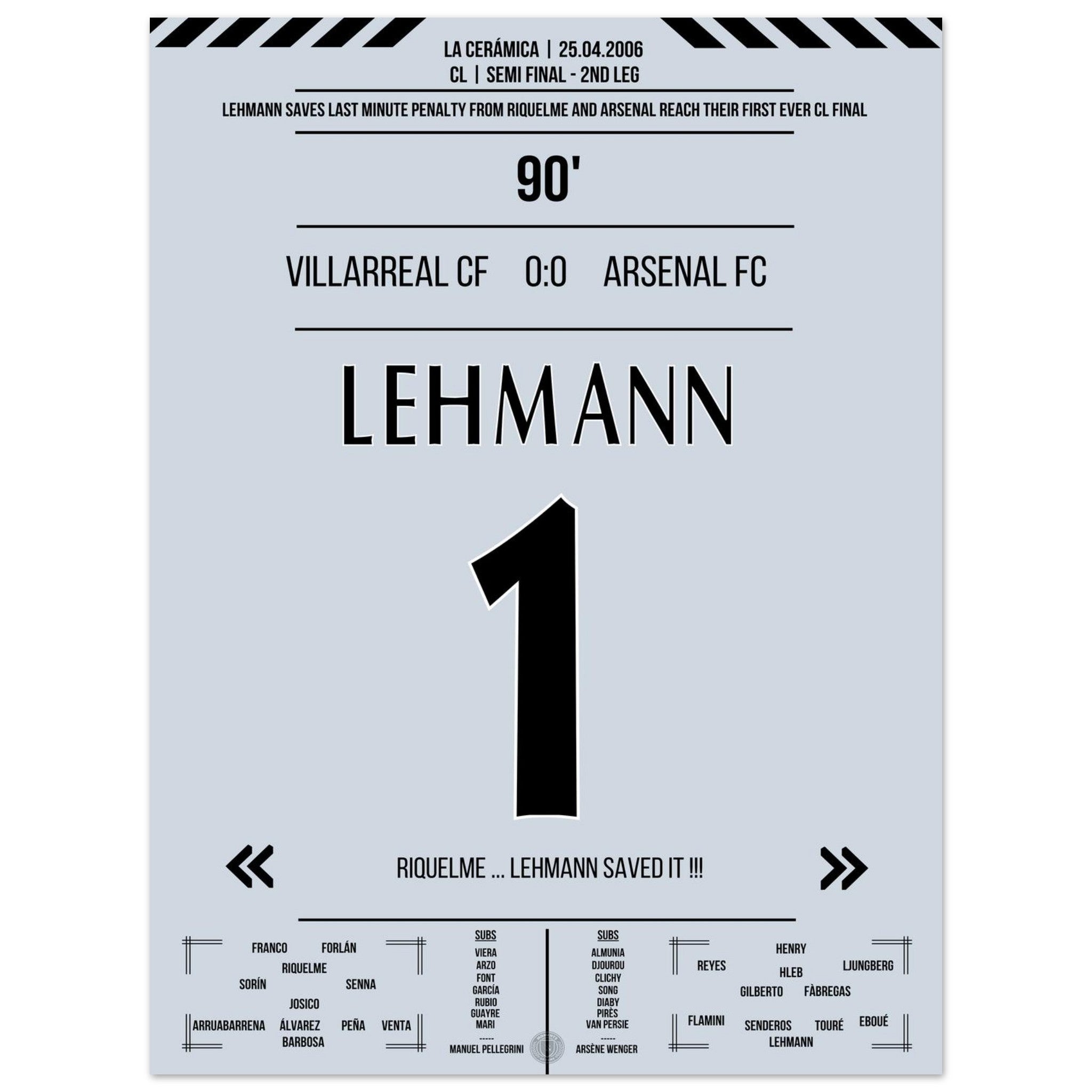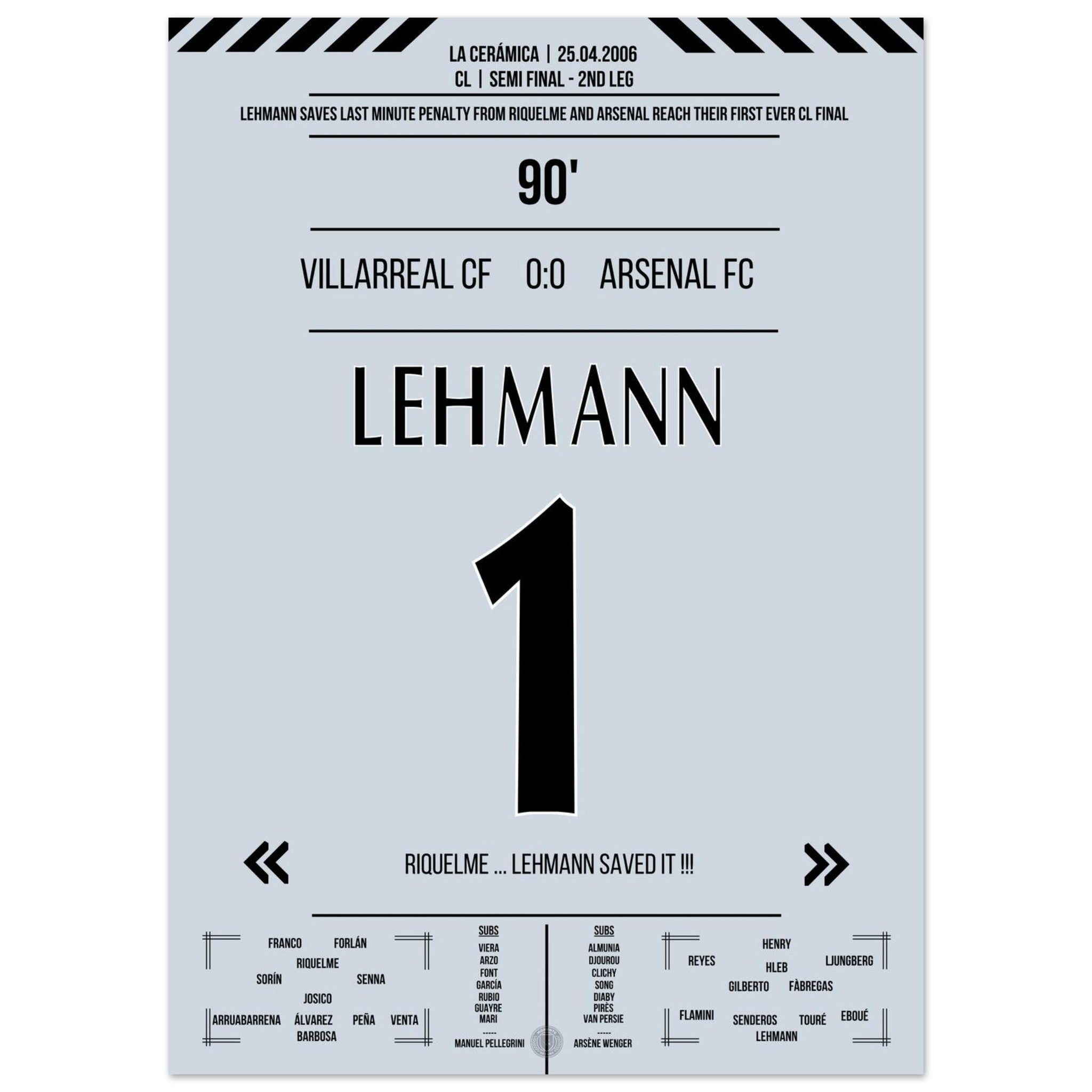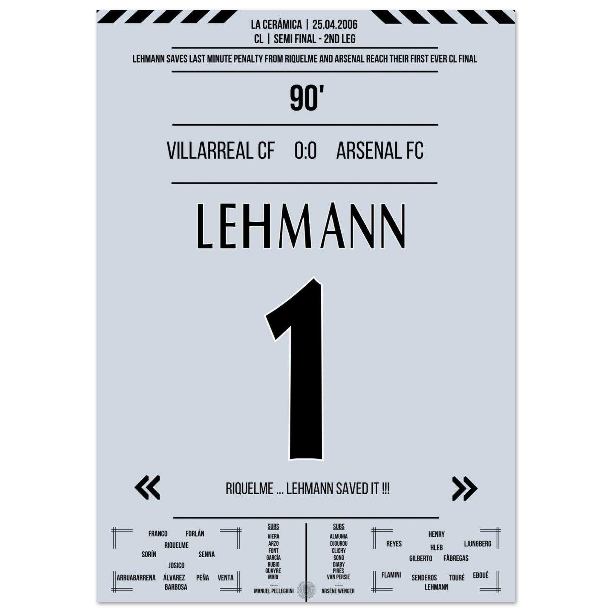 Lehmann para il rigore di Riquelme e porta l'Arsenal in finale nel 2006.