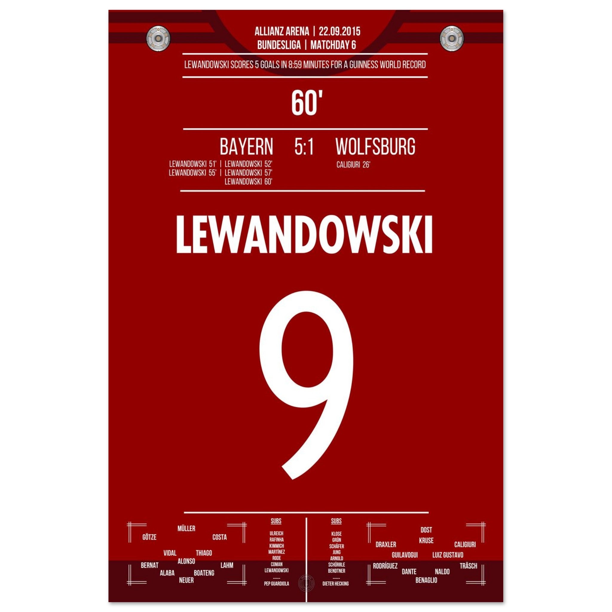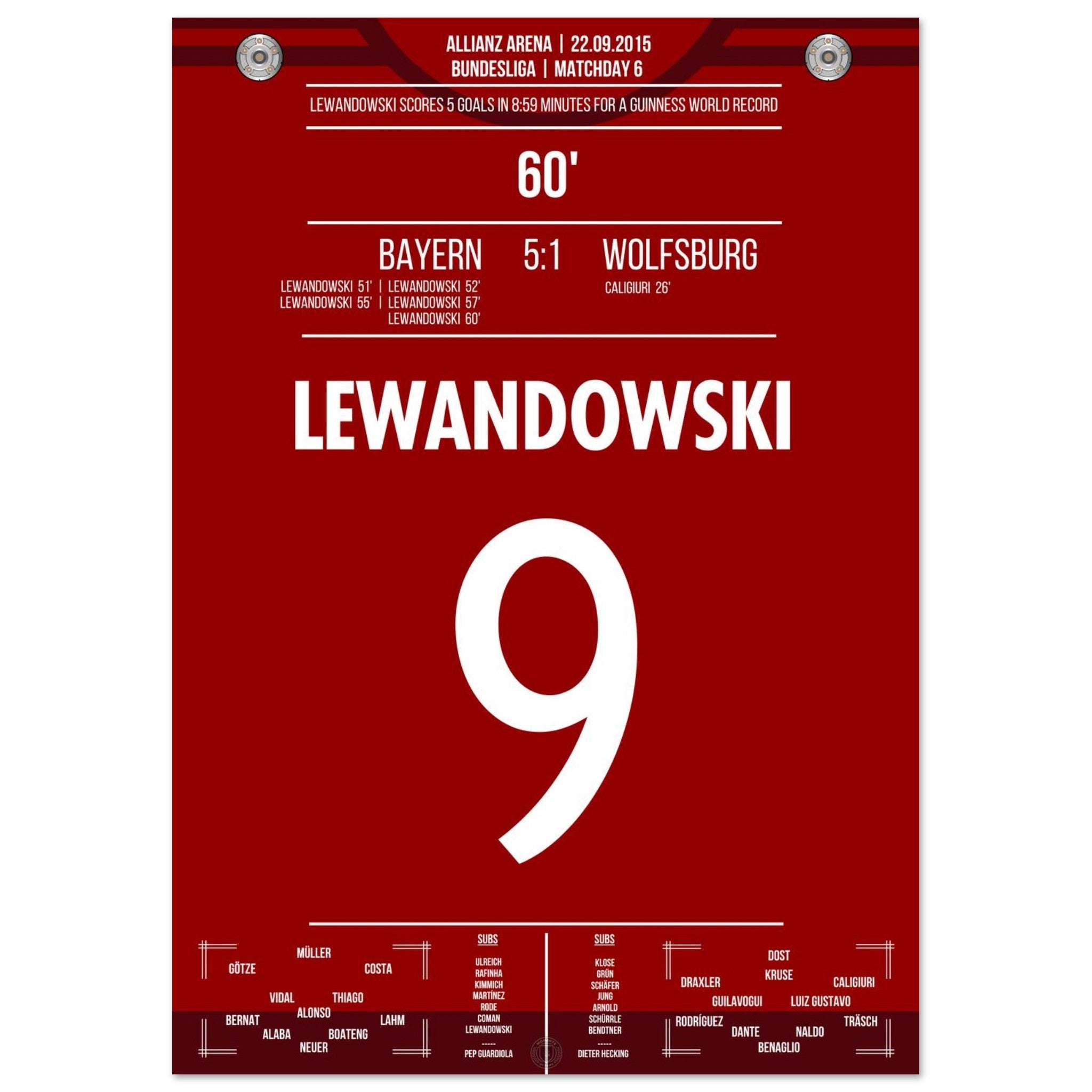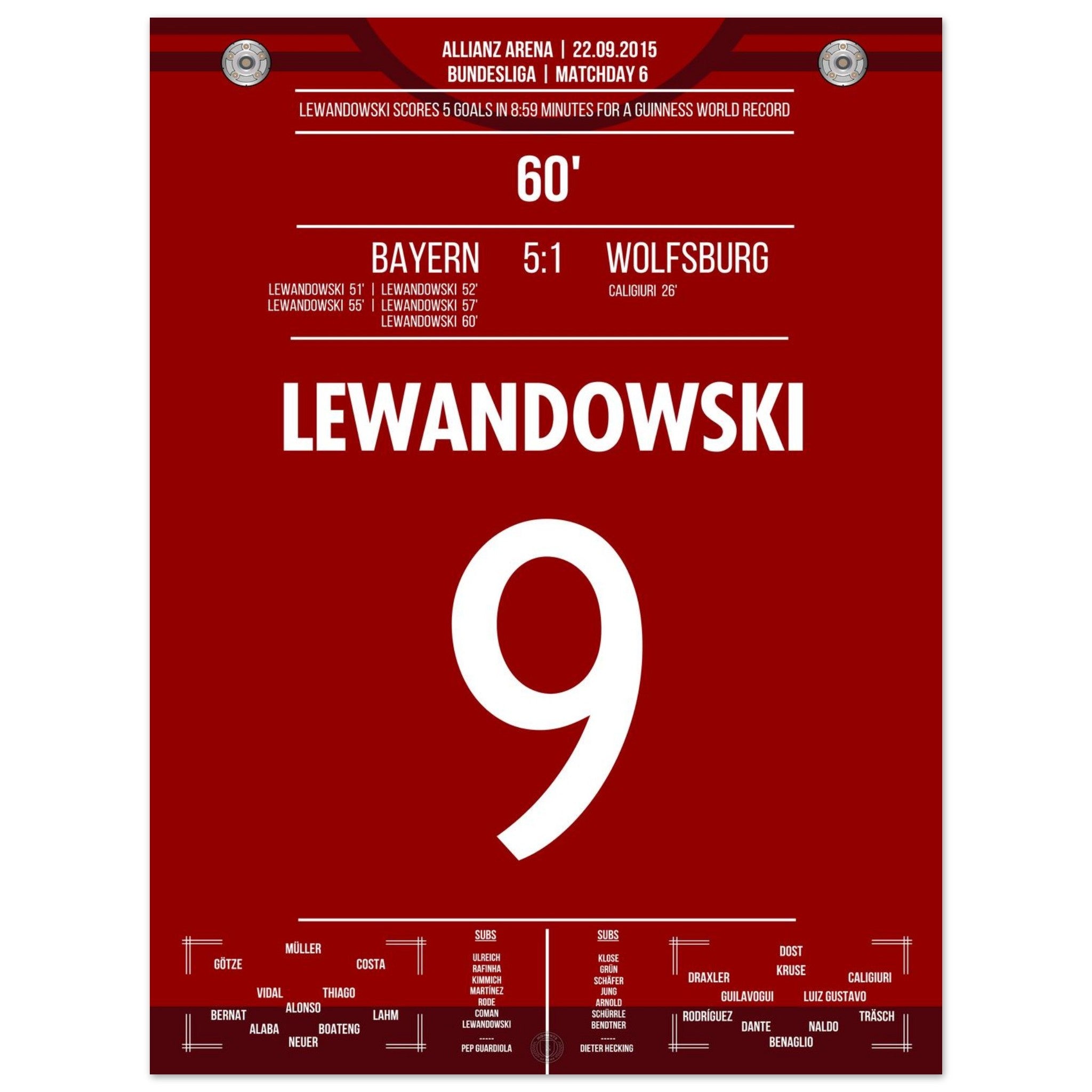 5 gol record del mondo di Lewandowski 2015 <tc>Bayern</tc> - Wolfsburg