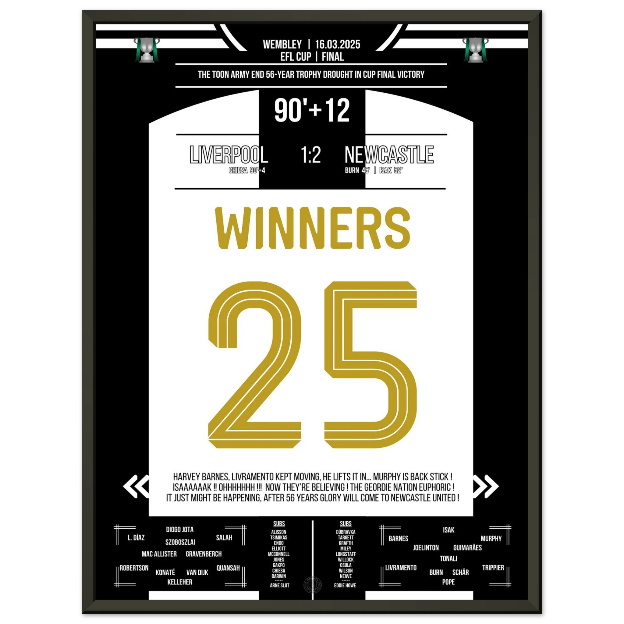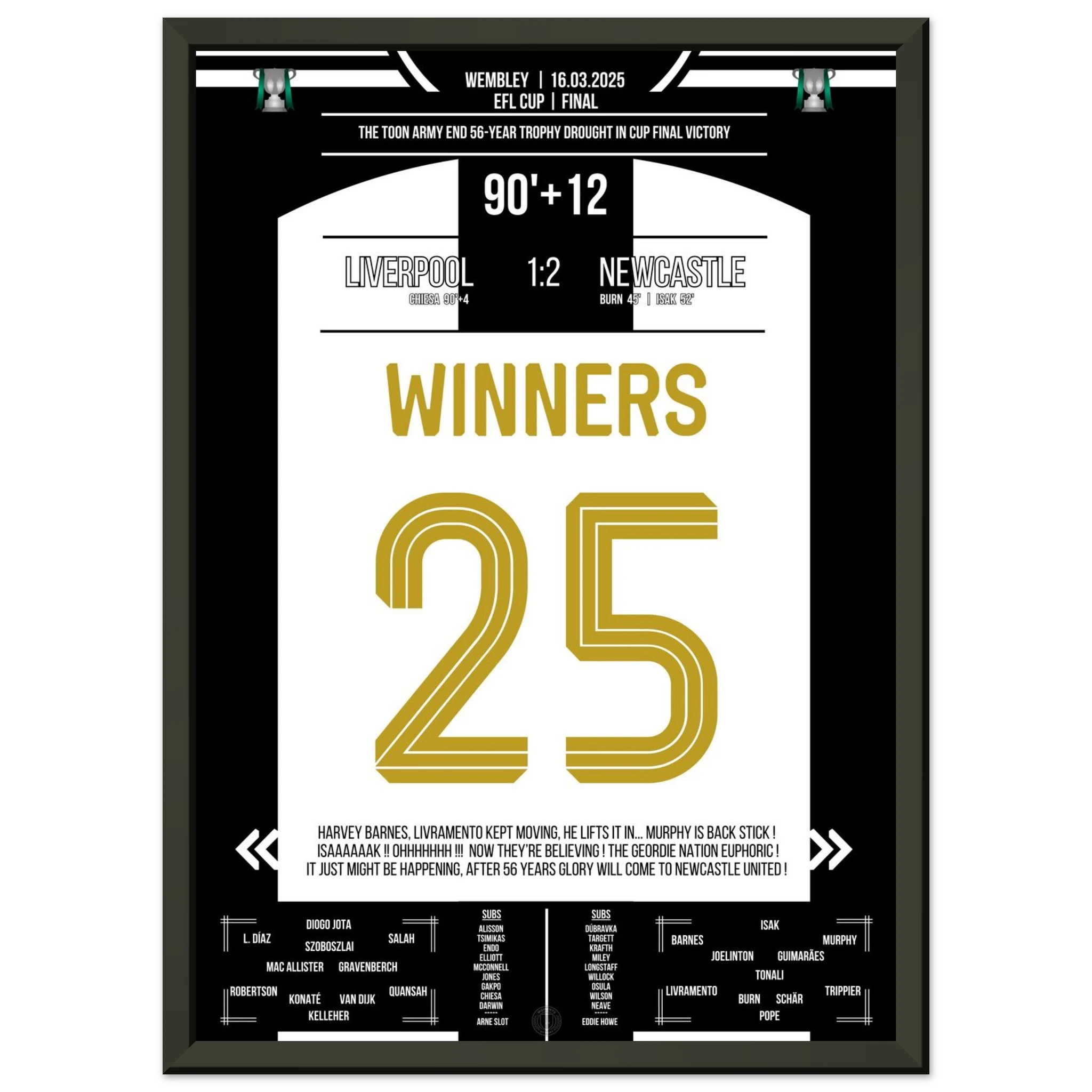 Jedes Poster und jeder Rahmen wird sicher verpackt versandt, sodass sie in einwandfreiem Zustand ankommen. Perfekt für die Sammlung jedes Fußballfans oder als ideales Geschenk!