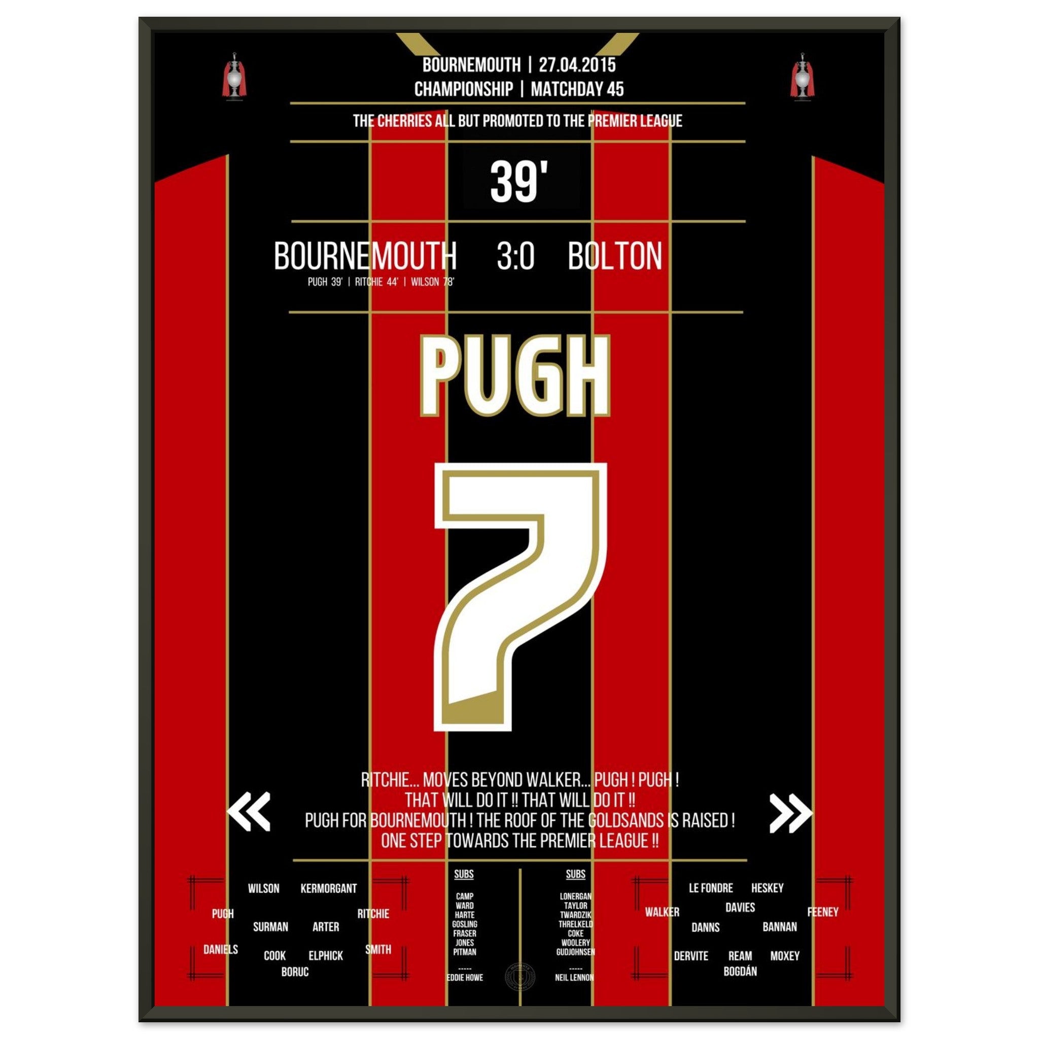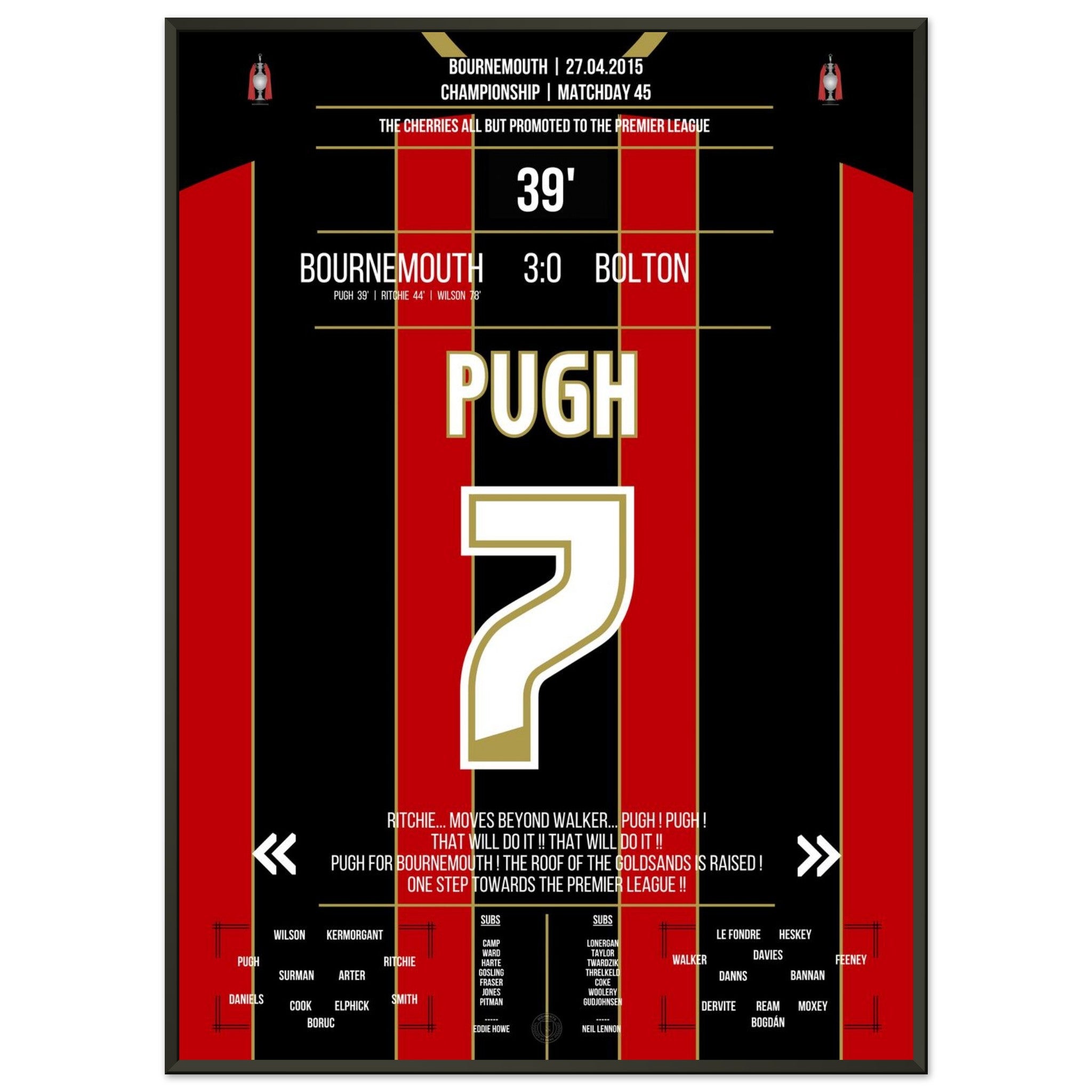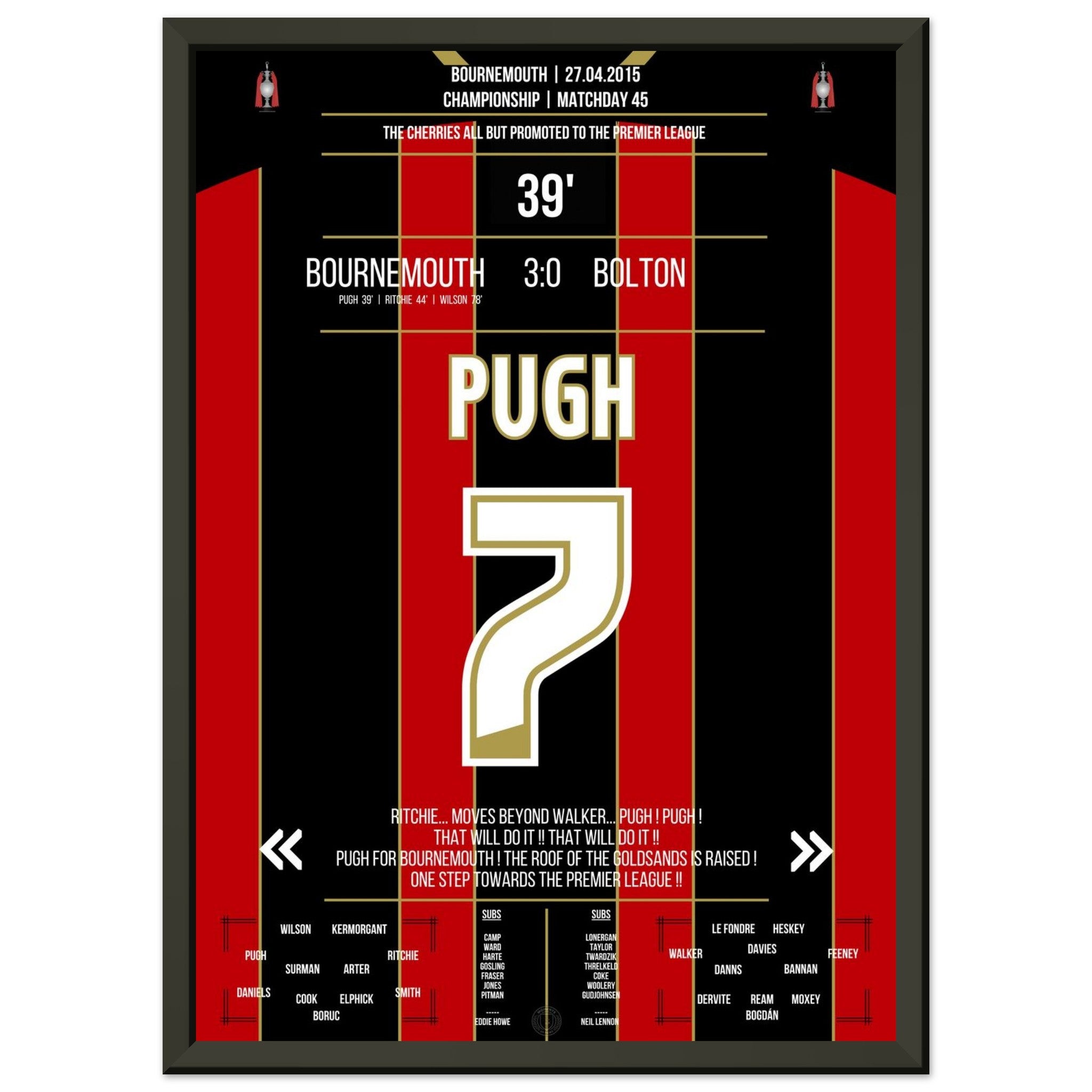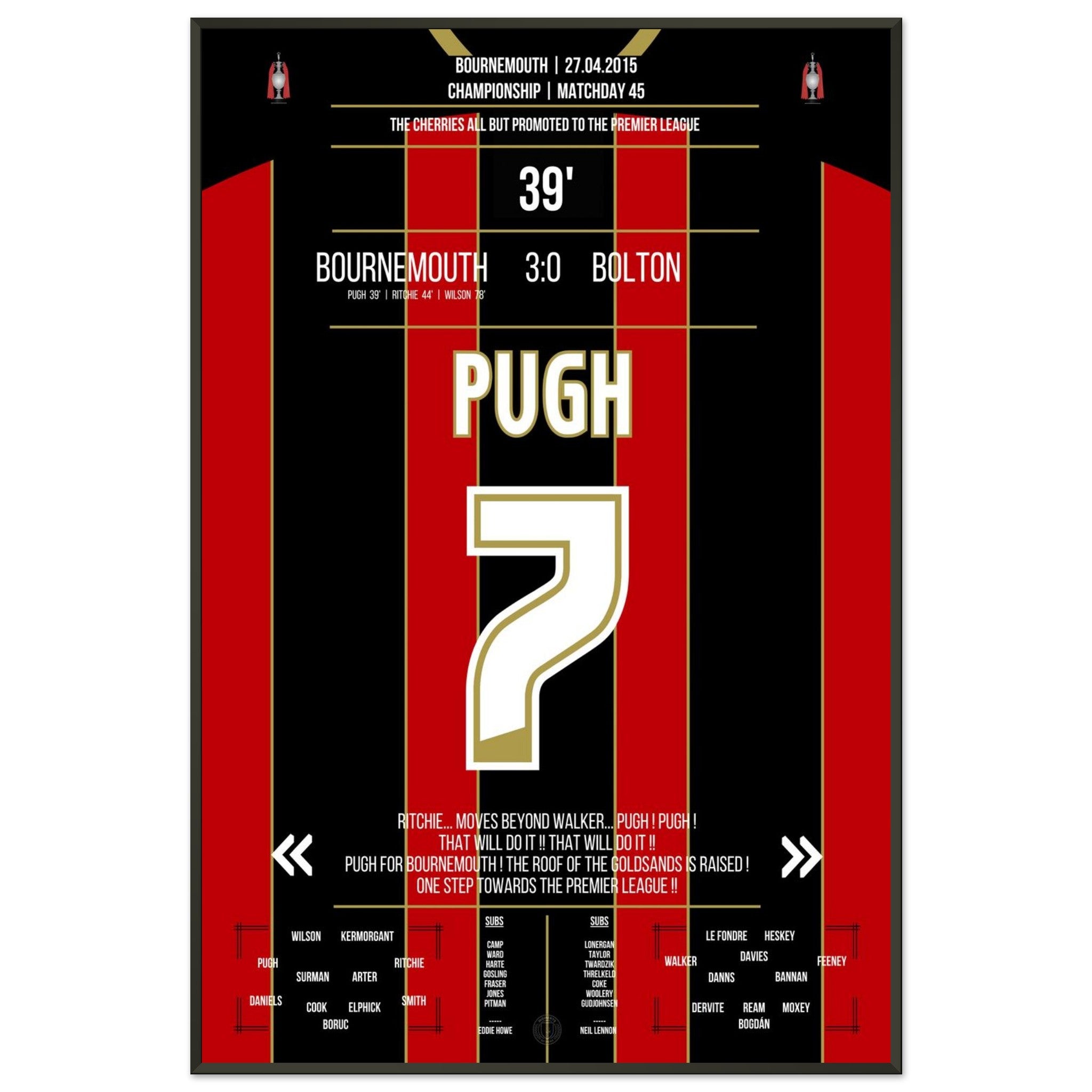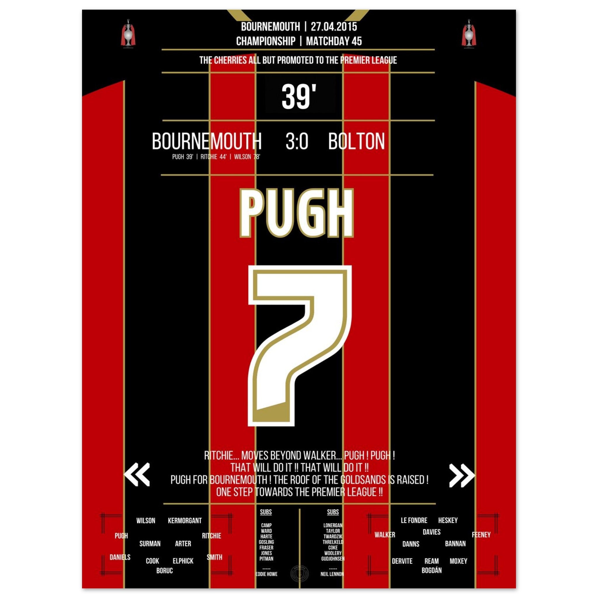 Pugh segna e il Bournemouth conquista quasi definitivamente la promozione in Premier League nel 2015.