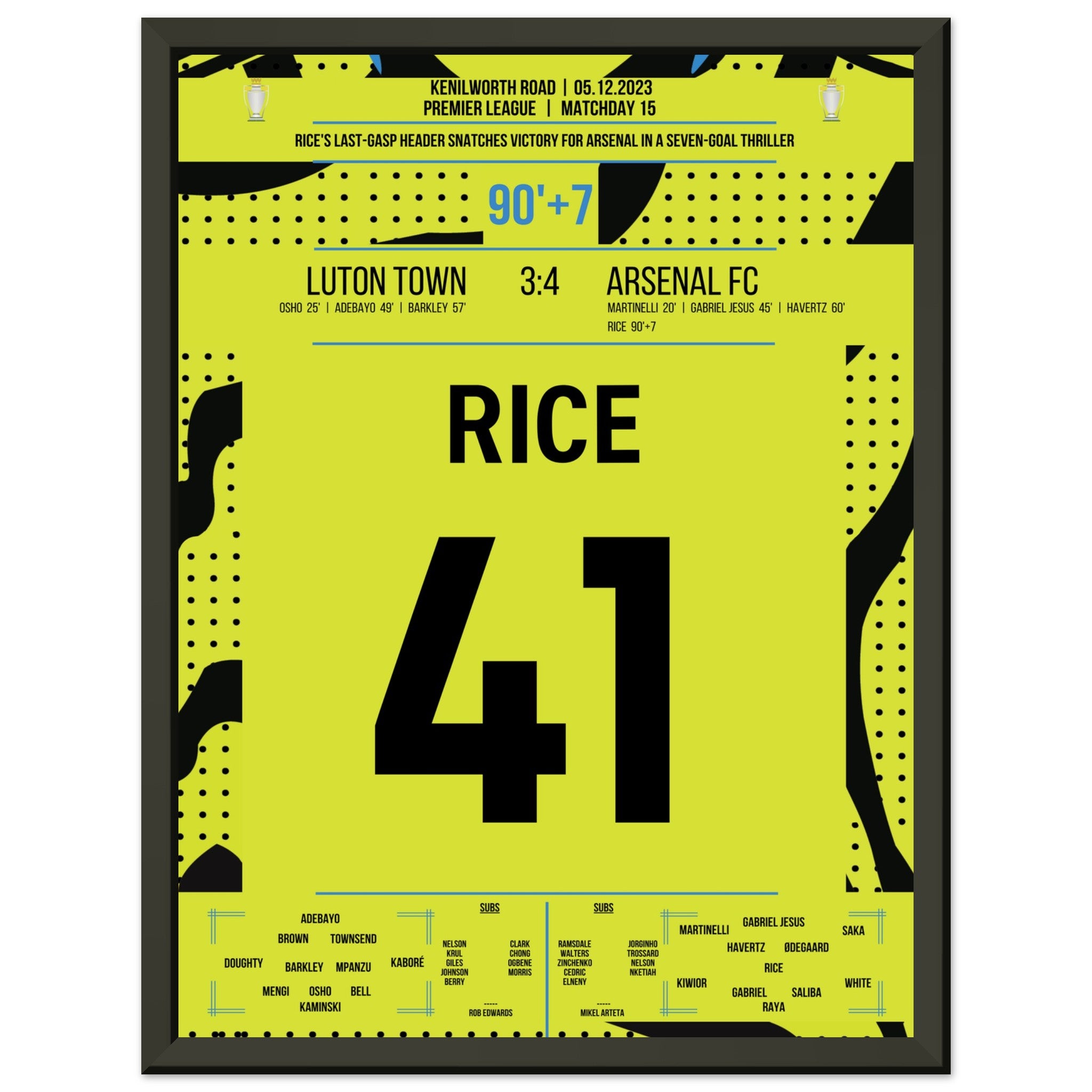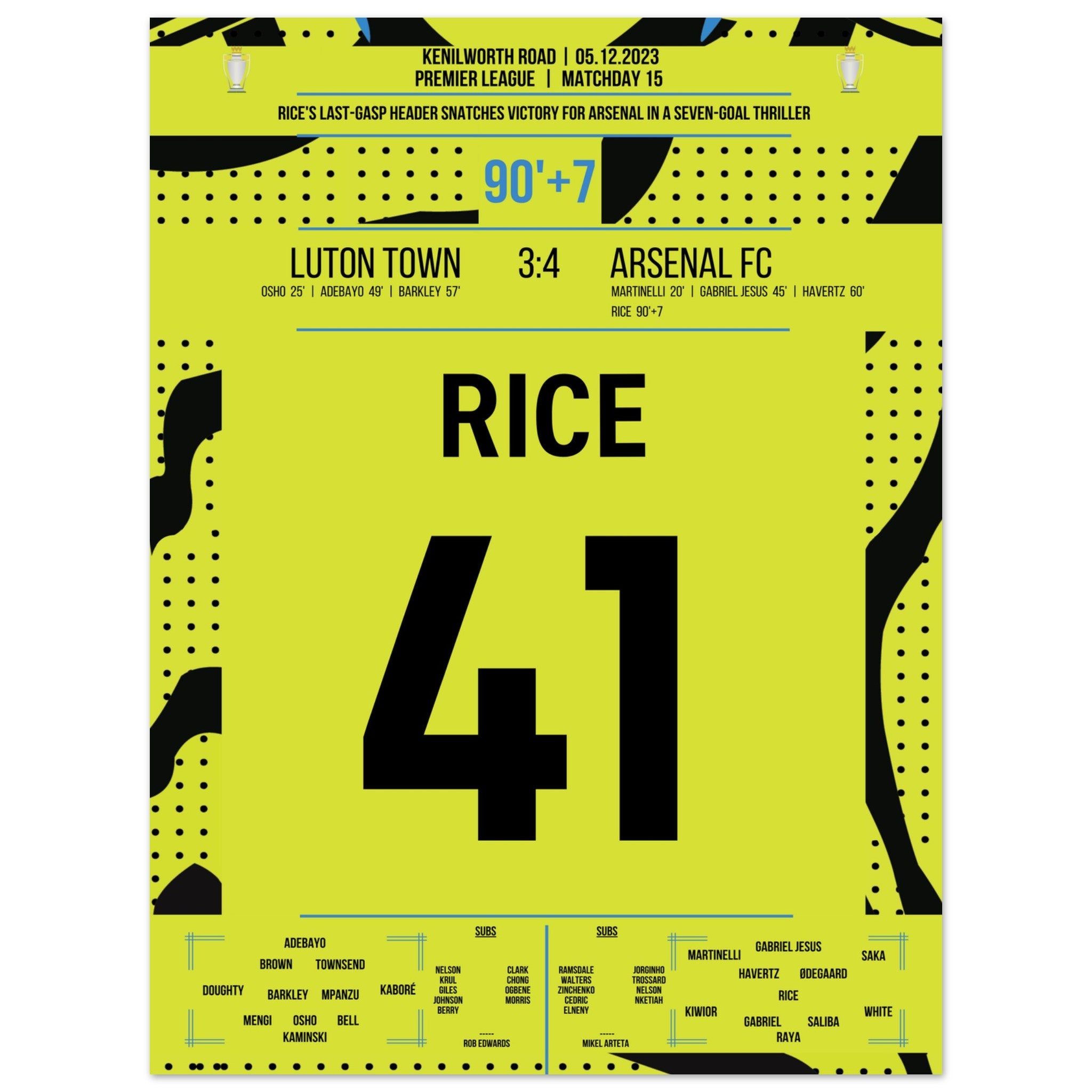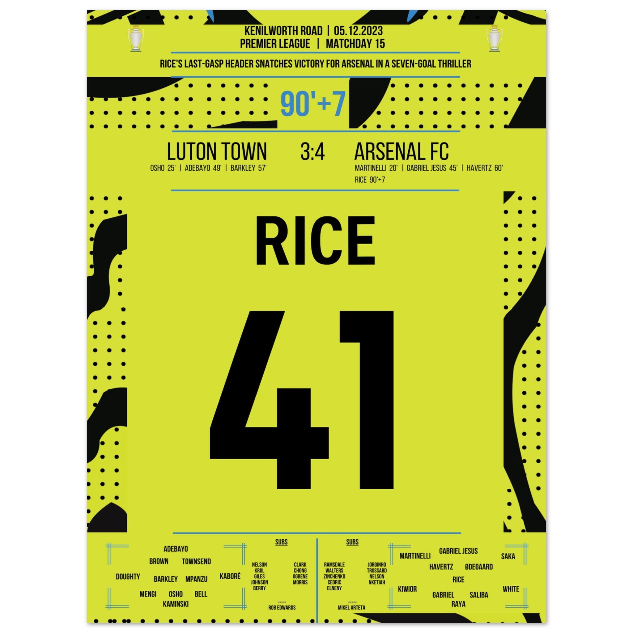 Rice colpisce l'Arsenal all'ultimo secondo per la vittoria in trasferta.