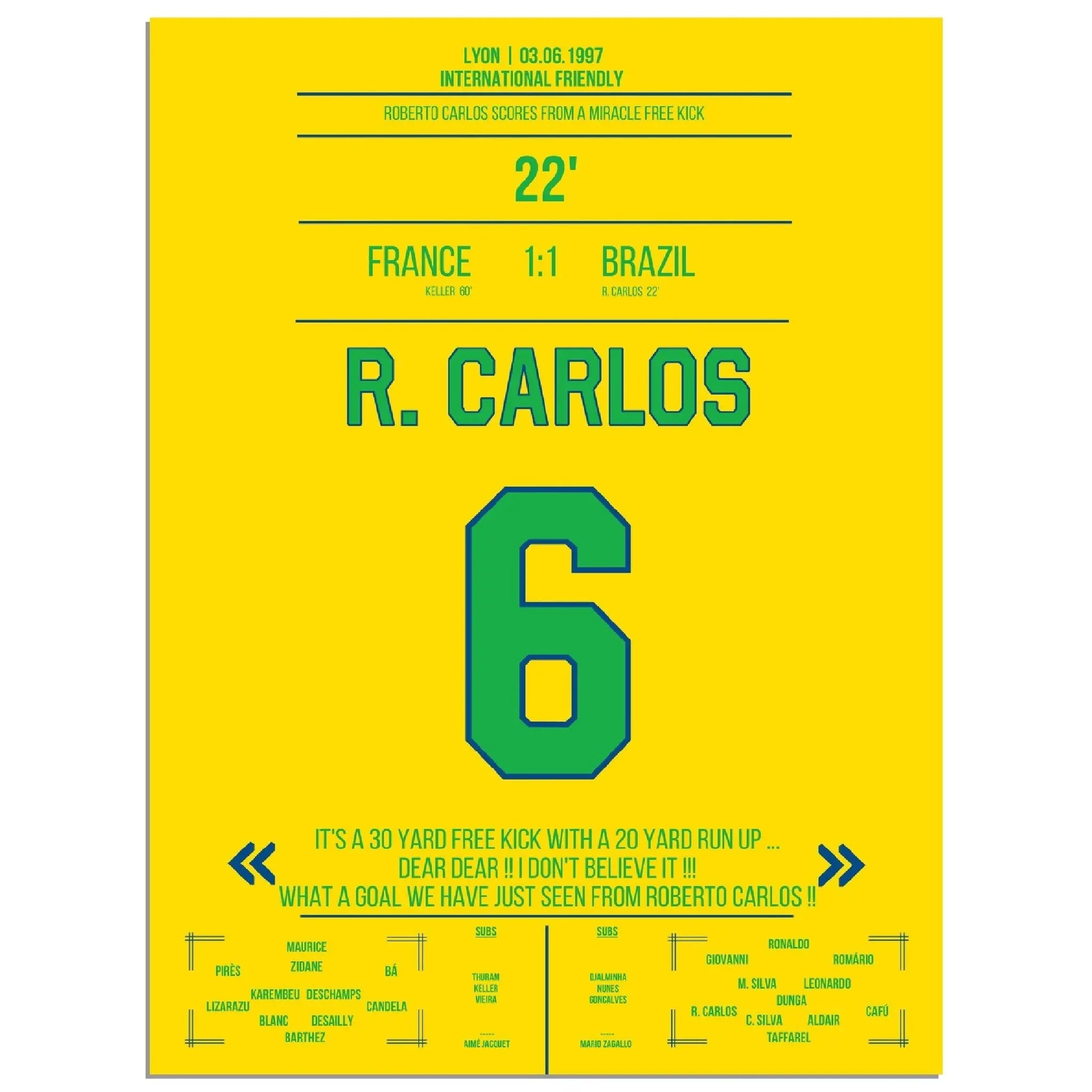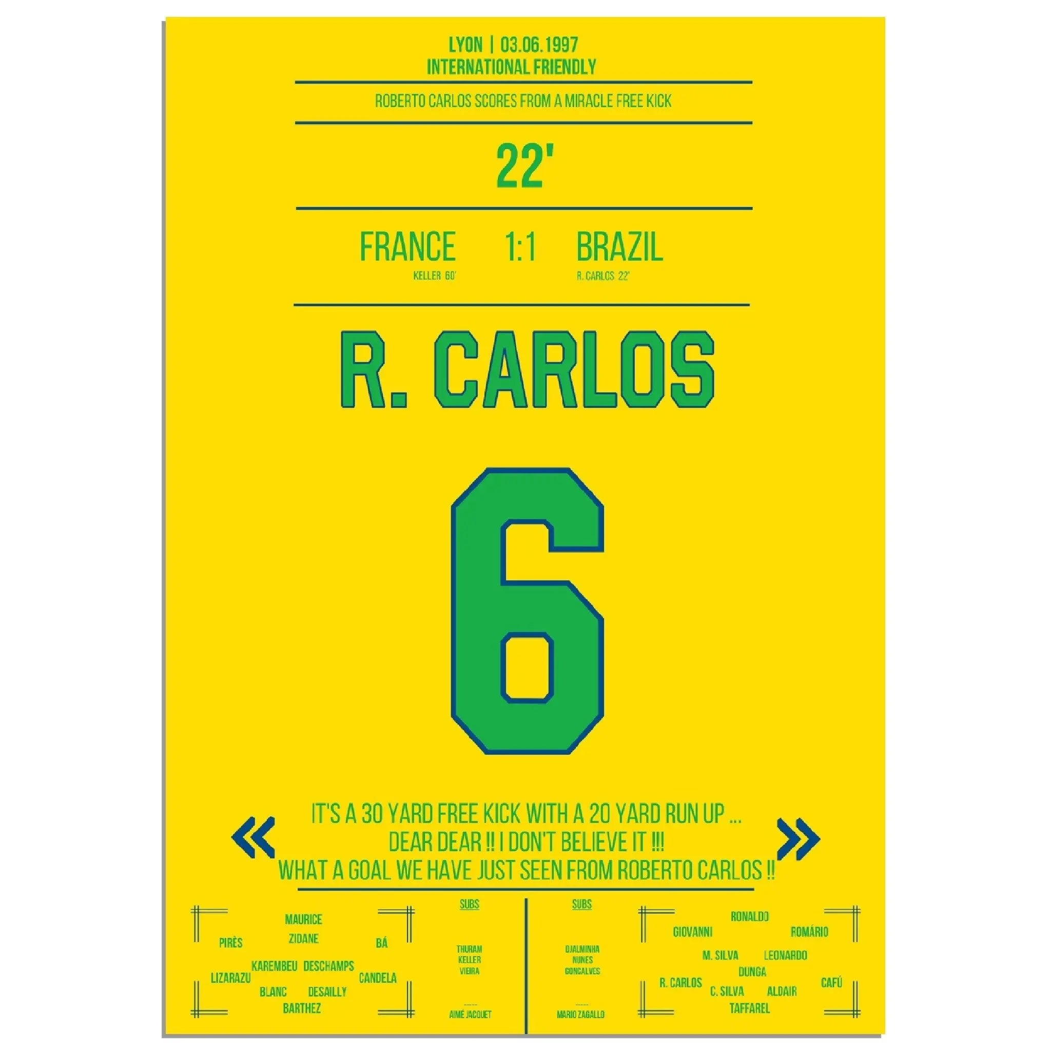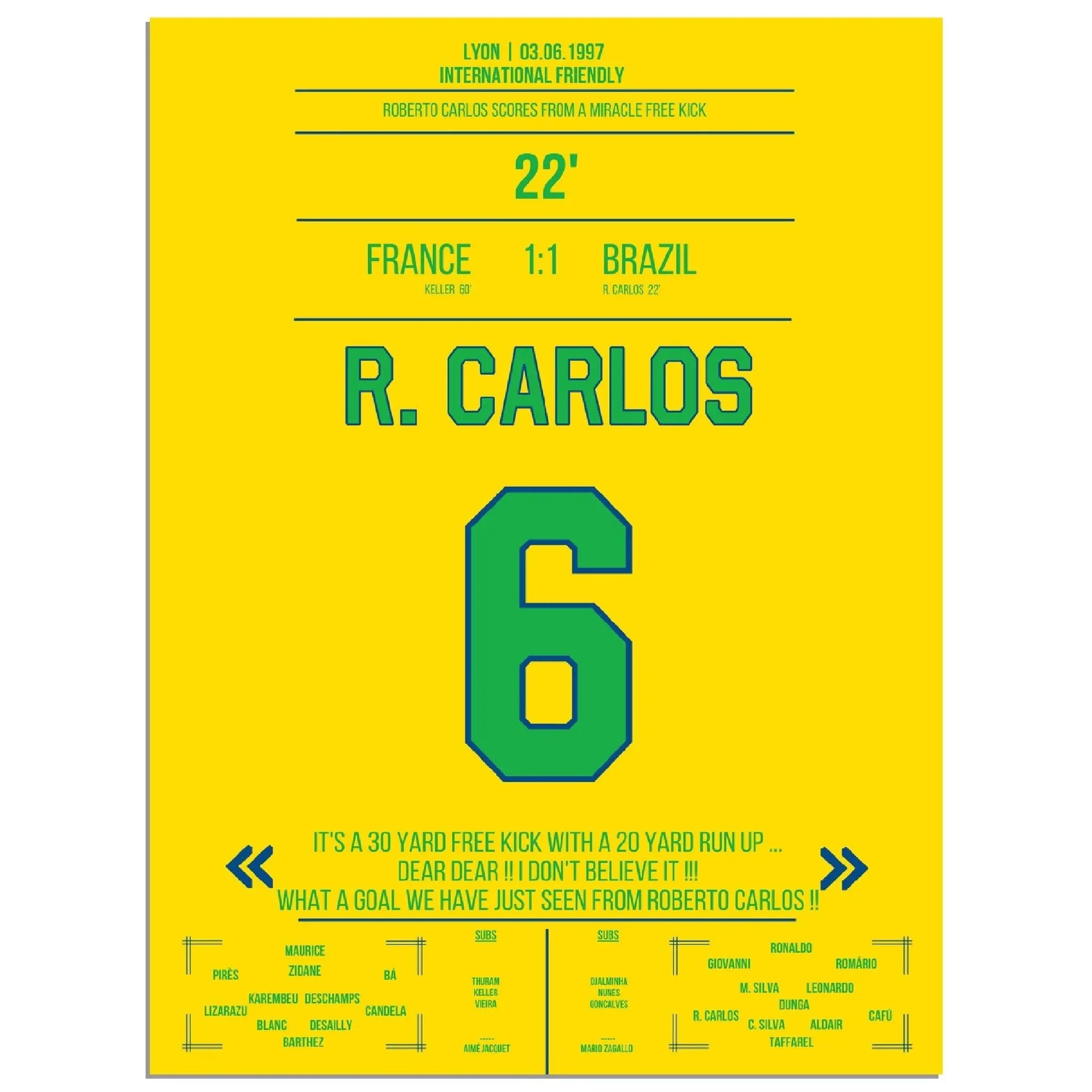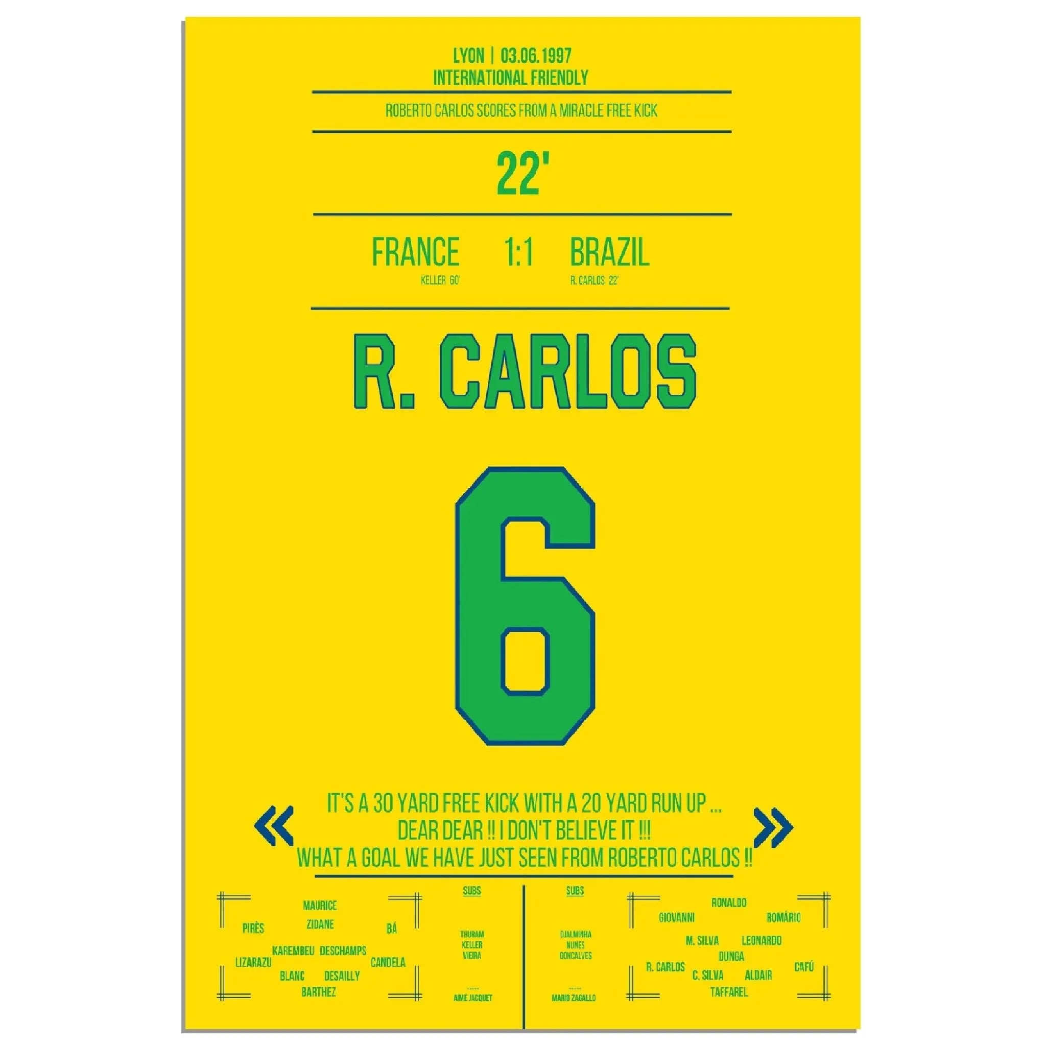 Roberto Carlos calcio di punizione magico contro la Francia