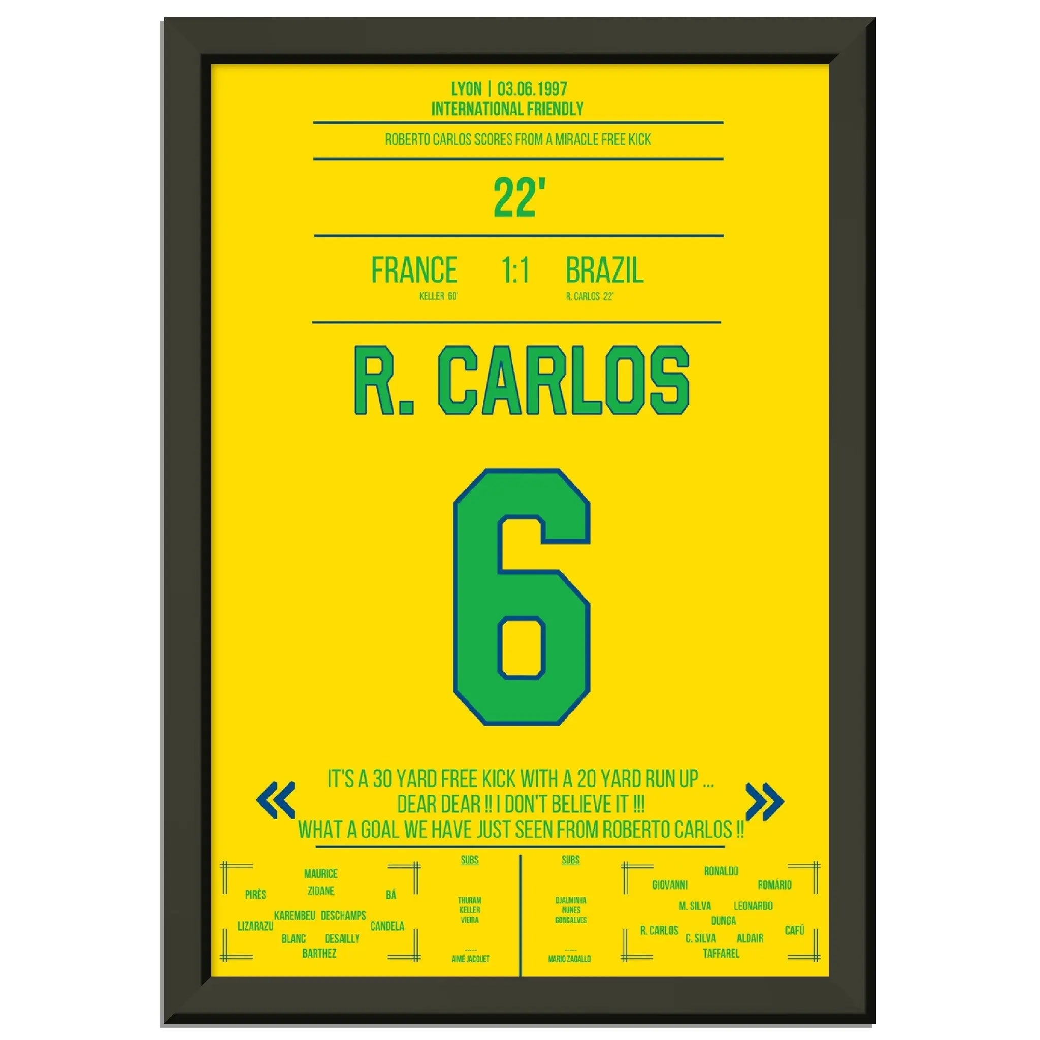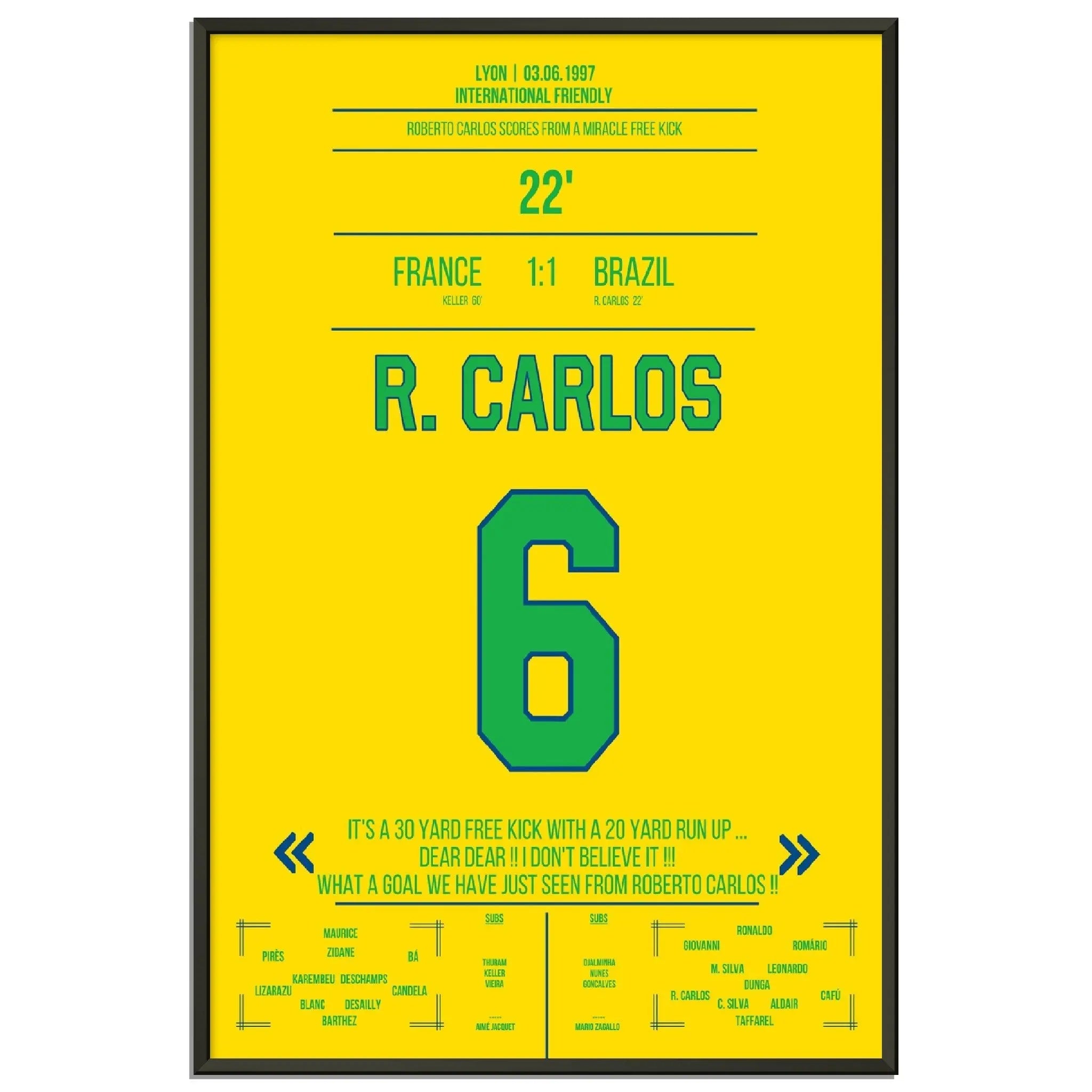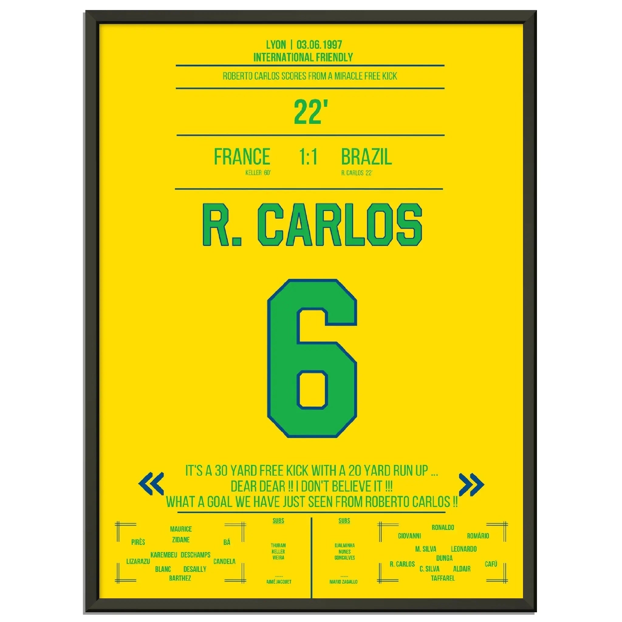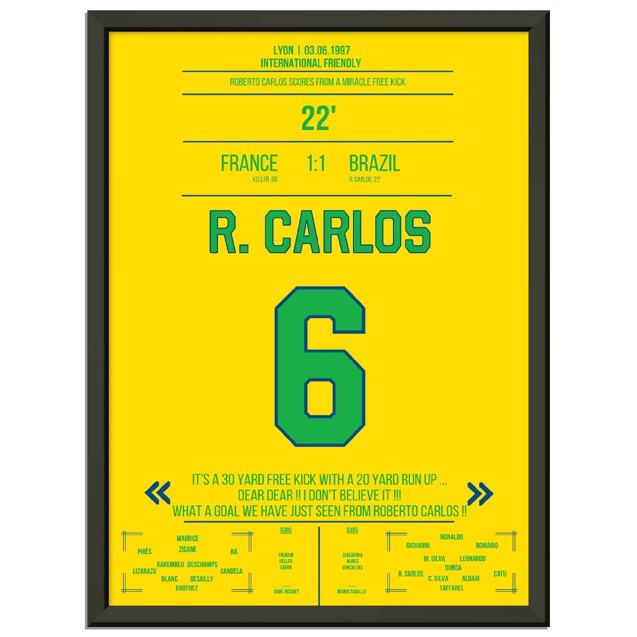 Roberto Carlos calcio di punizione magico contro la Francia