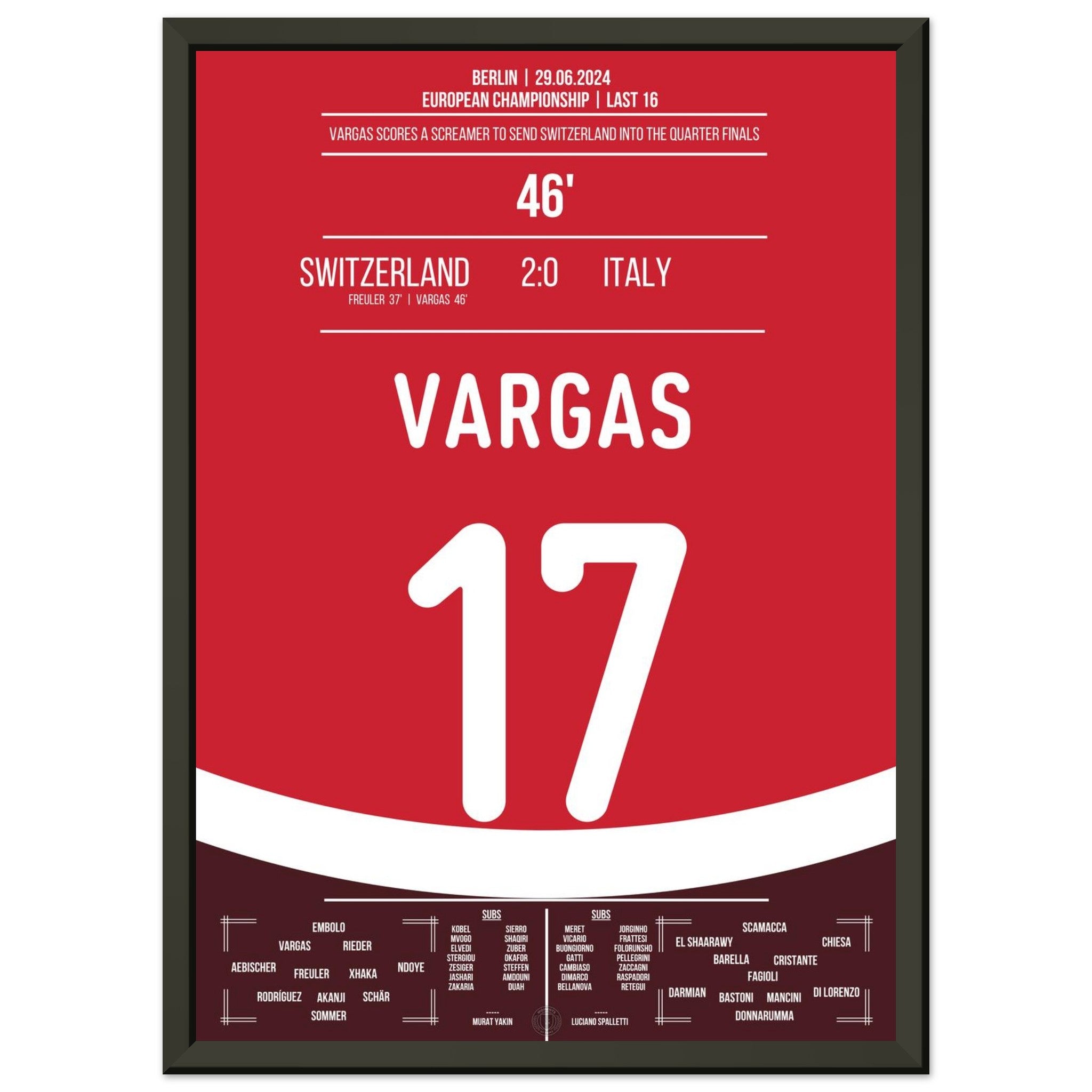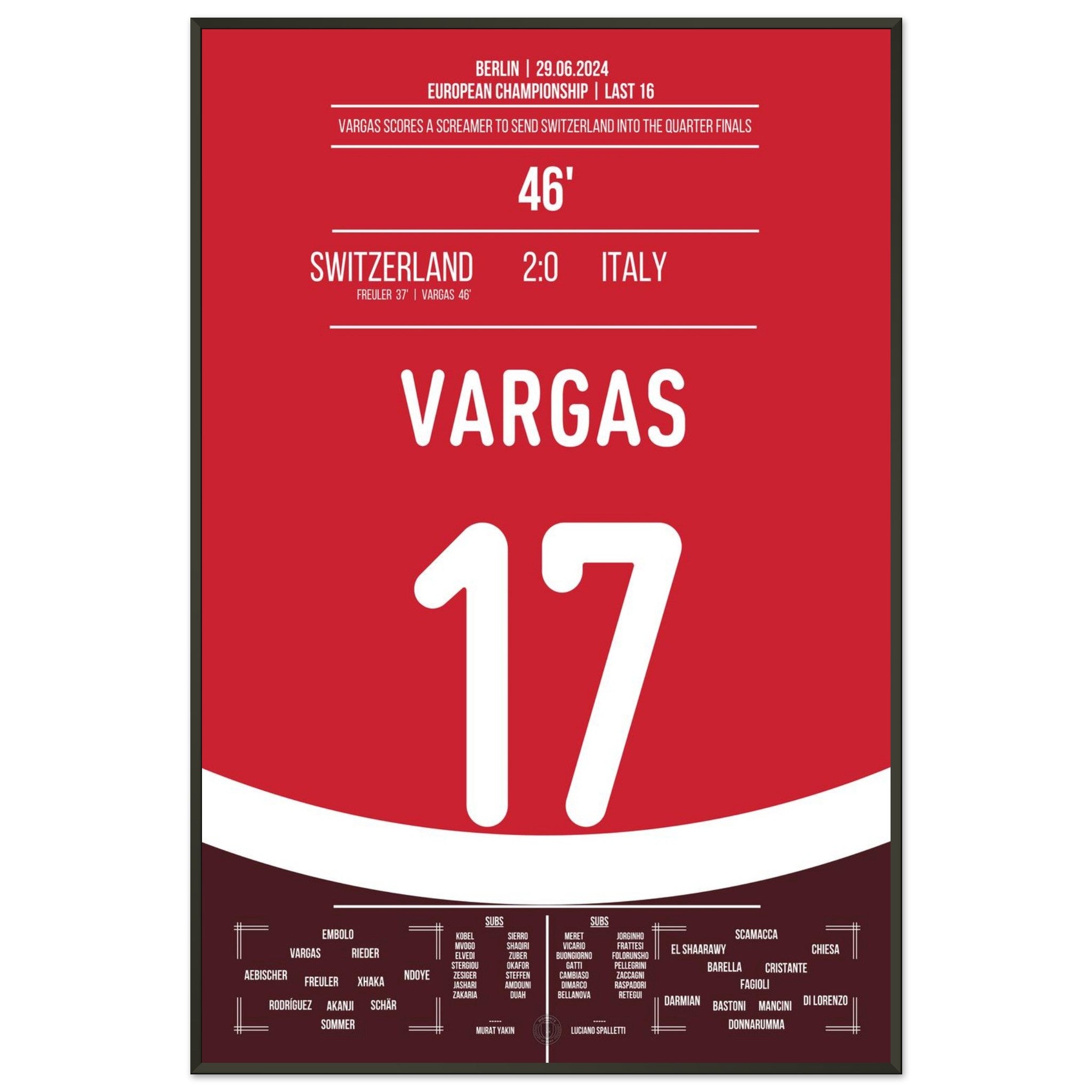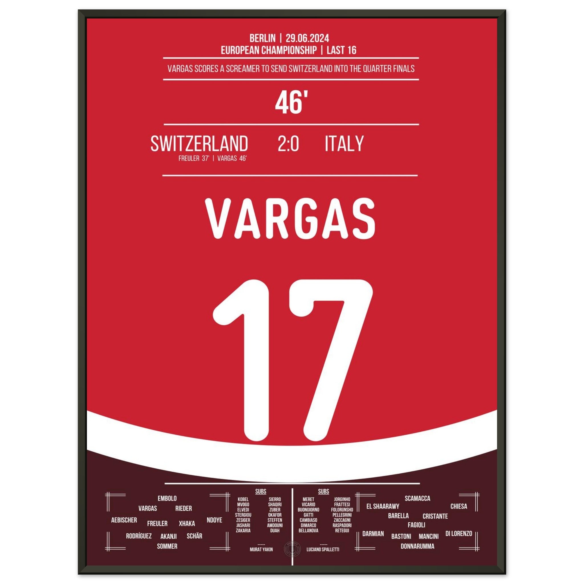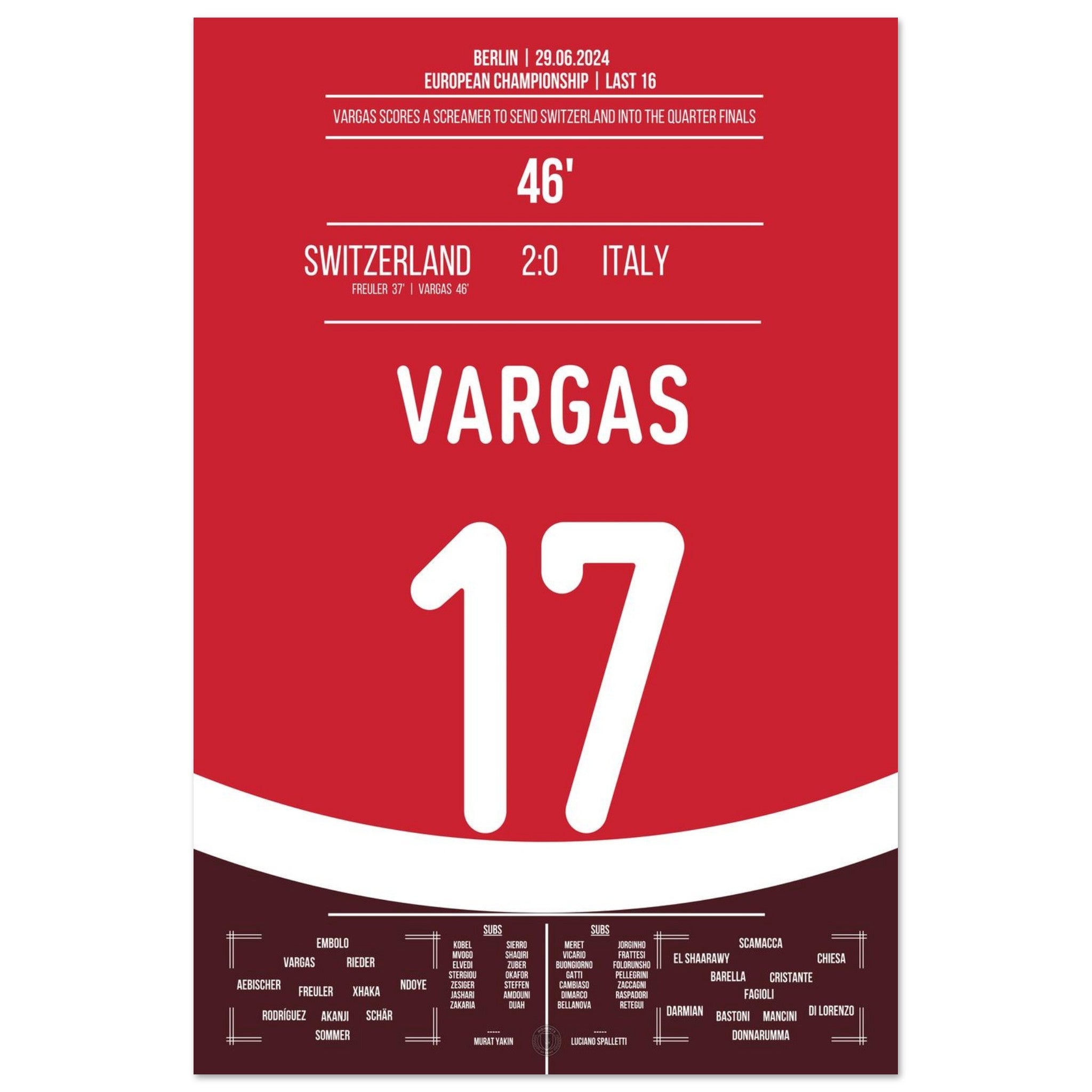 Vargas segna un gol da sogno e porta la Svizzera ai quarti di finale.