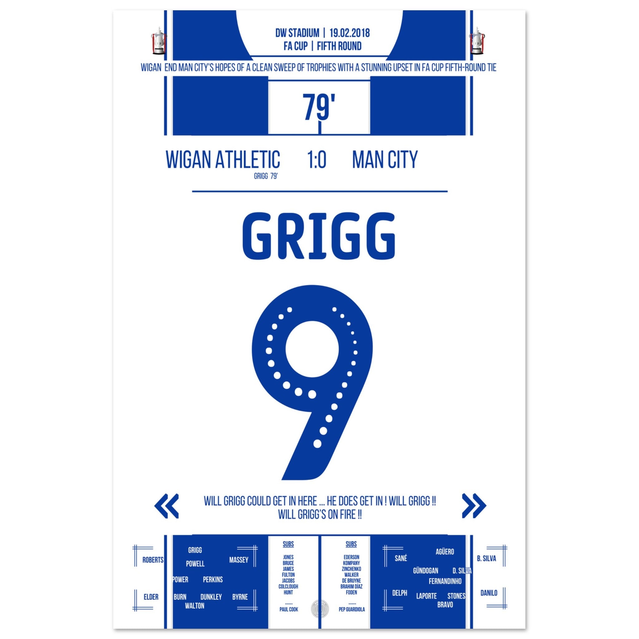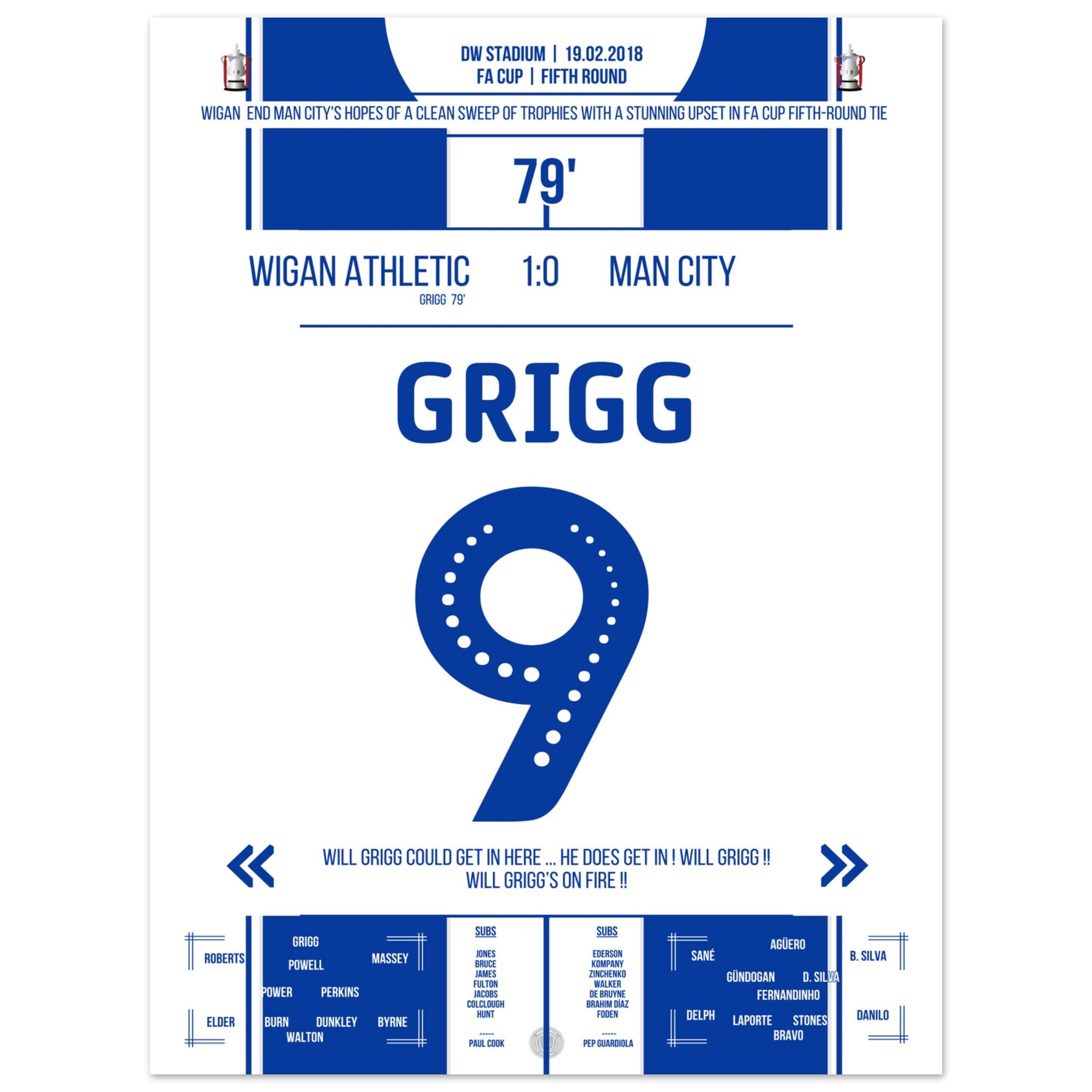 Will Grigg è in forma! Il Wigan diventa nuovamente l'incubo di coppa per il Man City.