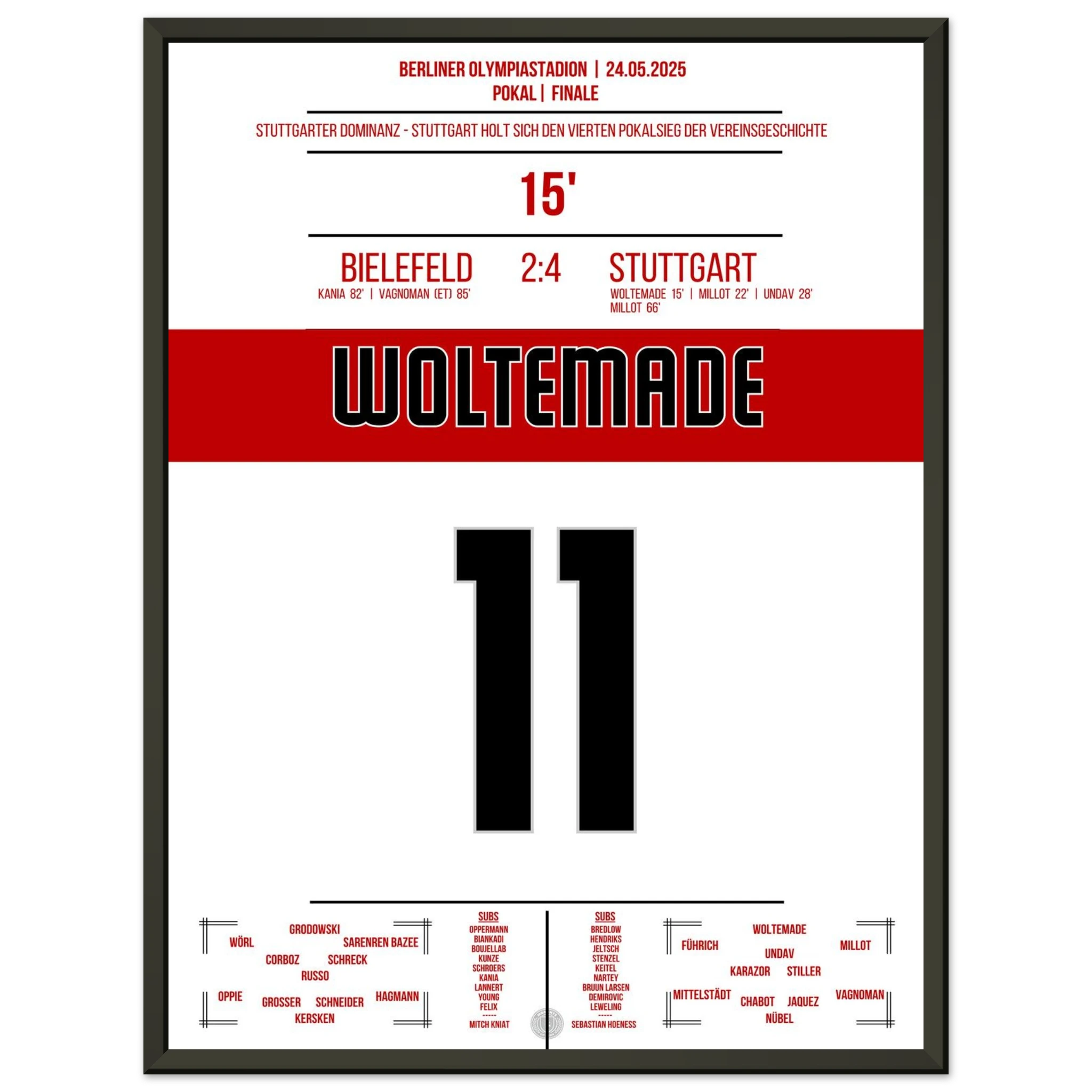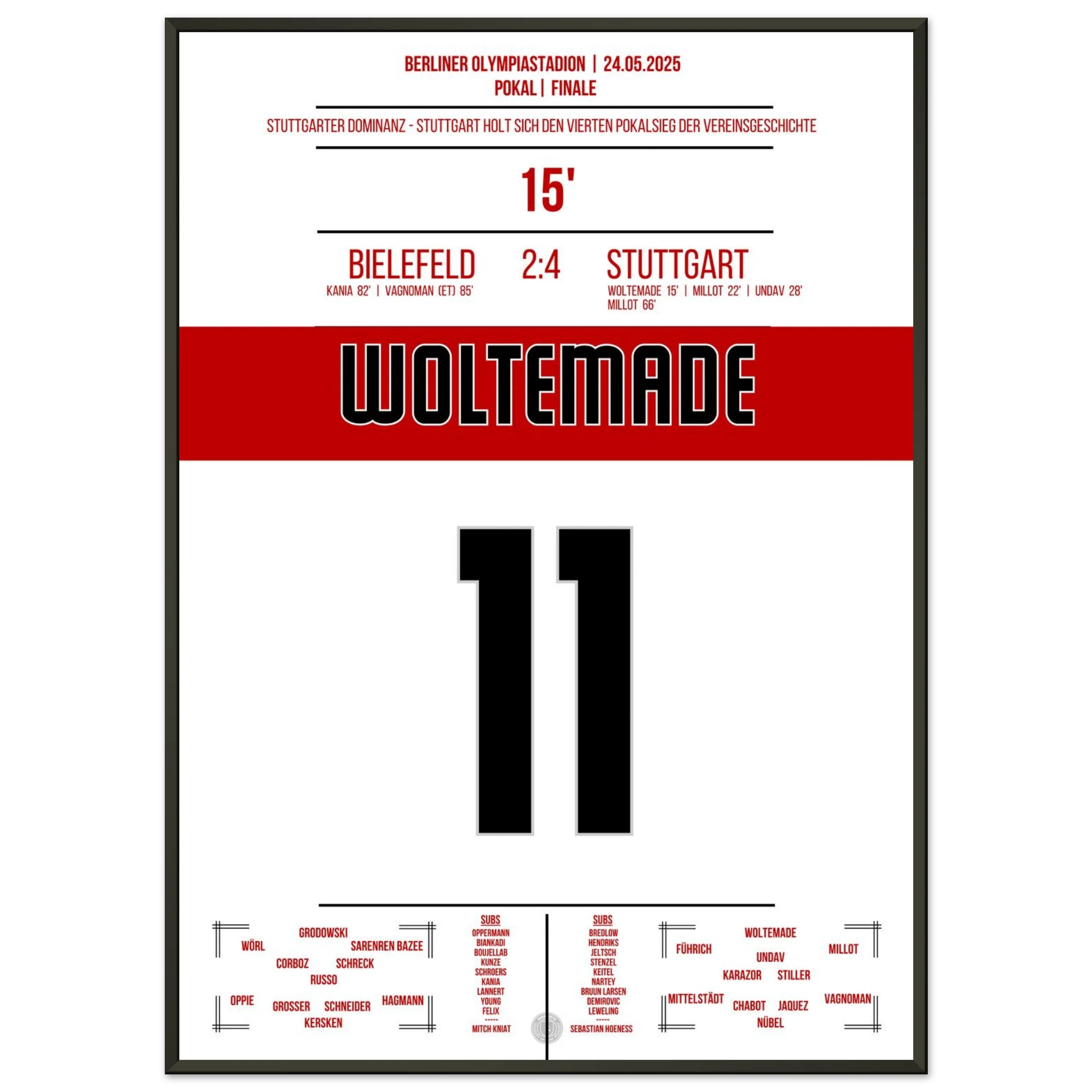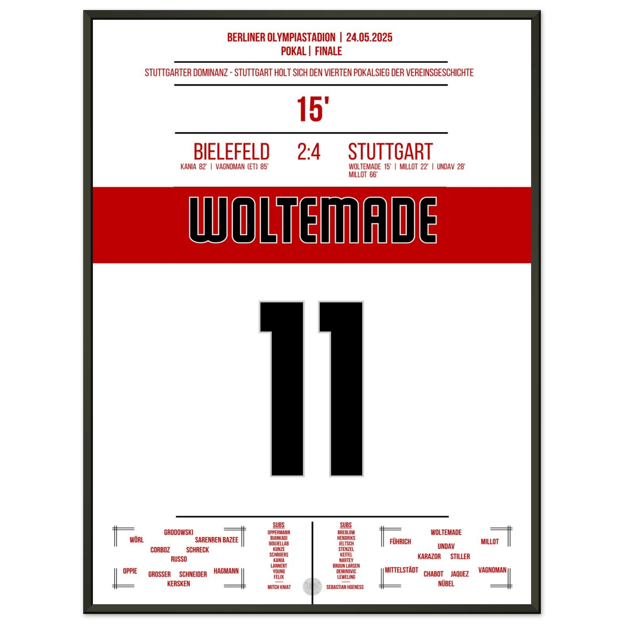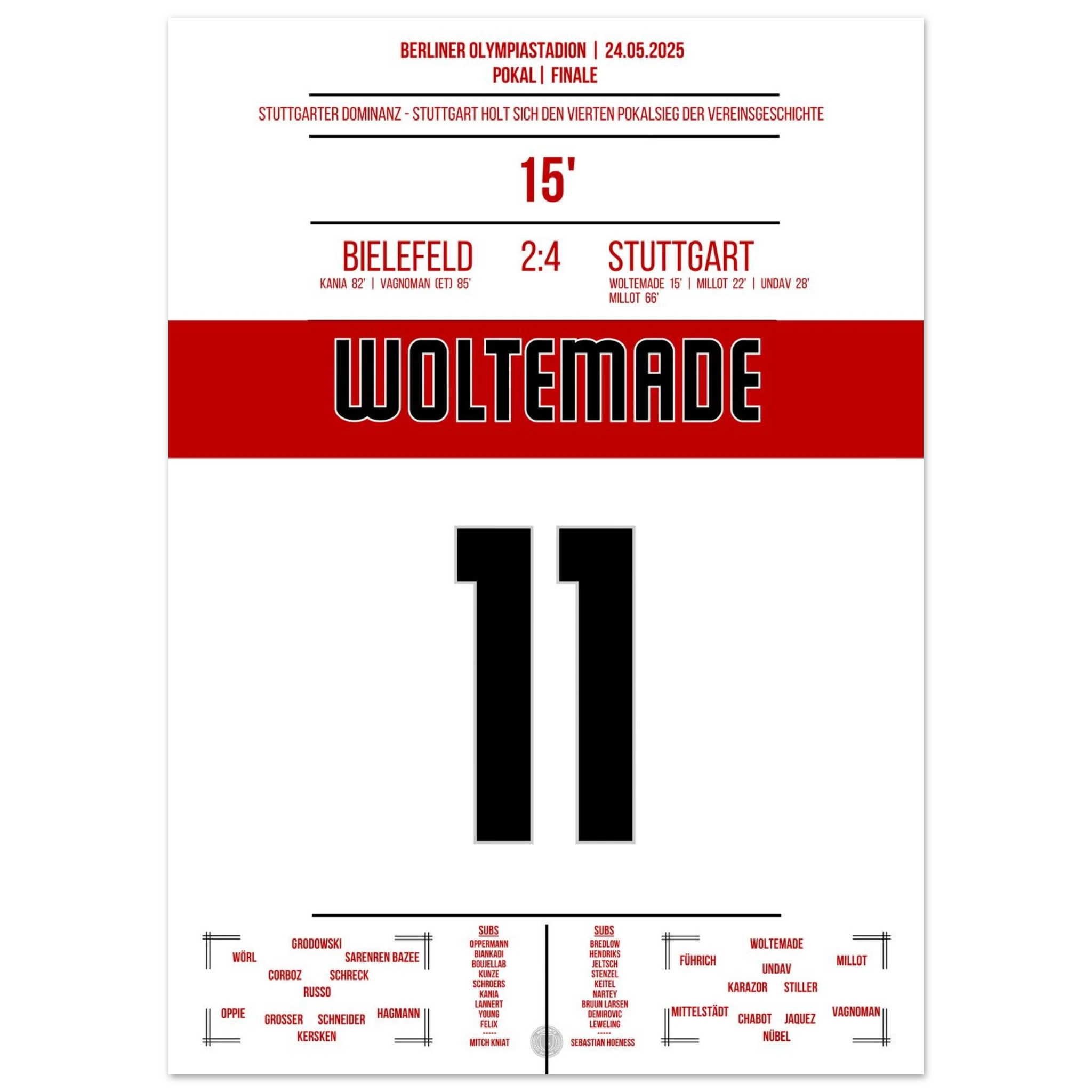 24. Mai 2025 – Bielefeld vs. Stuttgart 2:4: Stuttgart krönt eine überragende Saison mit dem Pokalsieg in Berlin! Mit Leidenschaft, Tempo und klarem Spiel bezwingen die Schwaben Bielefeld und holen den Pokal zurück nach Stuttgart. Unser Poster verewigt diesen rot-weißen Triumphmoment im Olympiastadion.