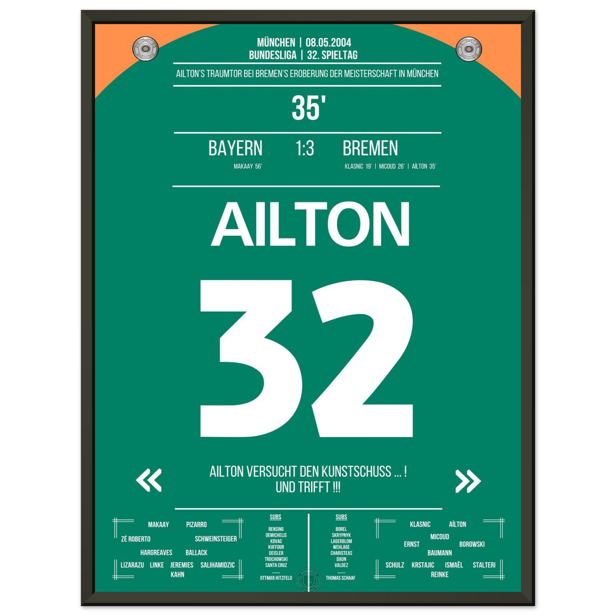 Olympiastadion. Aílton. Außenrist. 3:0. Meistermacher-Moment – jetzt als Poster für deine Wand.