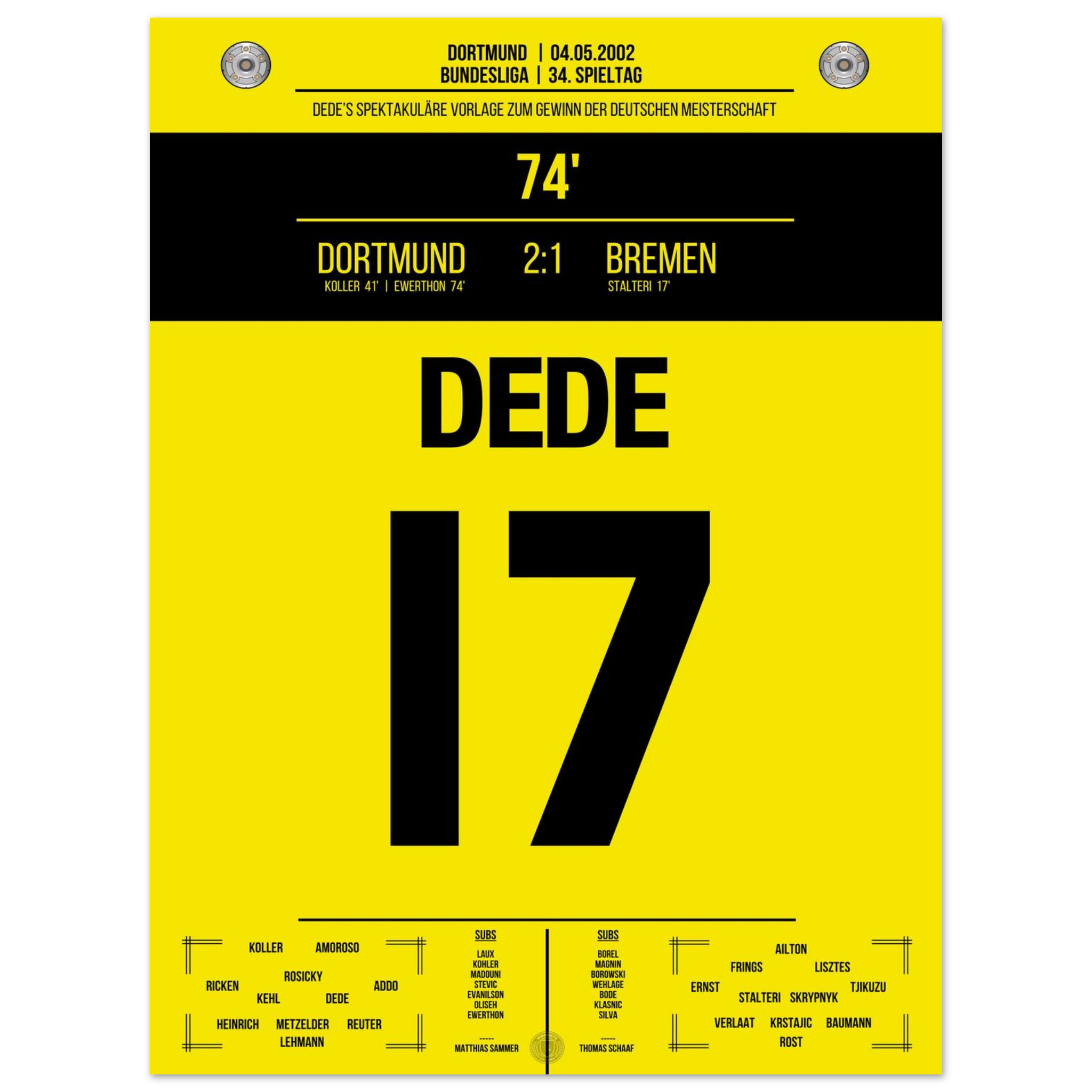 4. Mai 2002 – Dortmund vs. Bremen 2:1 – Dedes magischer Assist im Meisterkampf!
