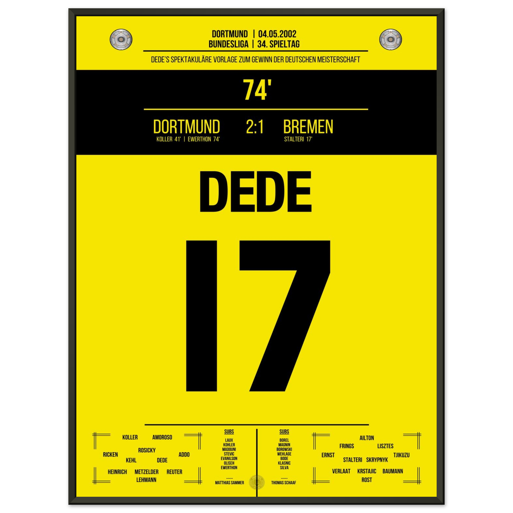 Dieses Poster hält den Augenblick fest, in dem Dedes Pass Geschichte schrieb – ein Meistermoment für die Ewigkeit.