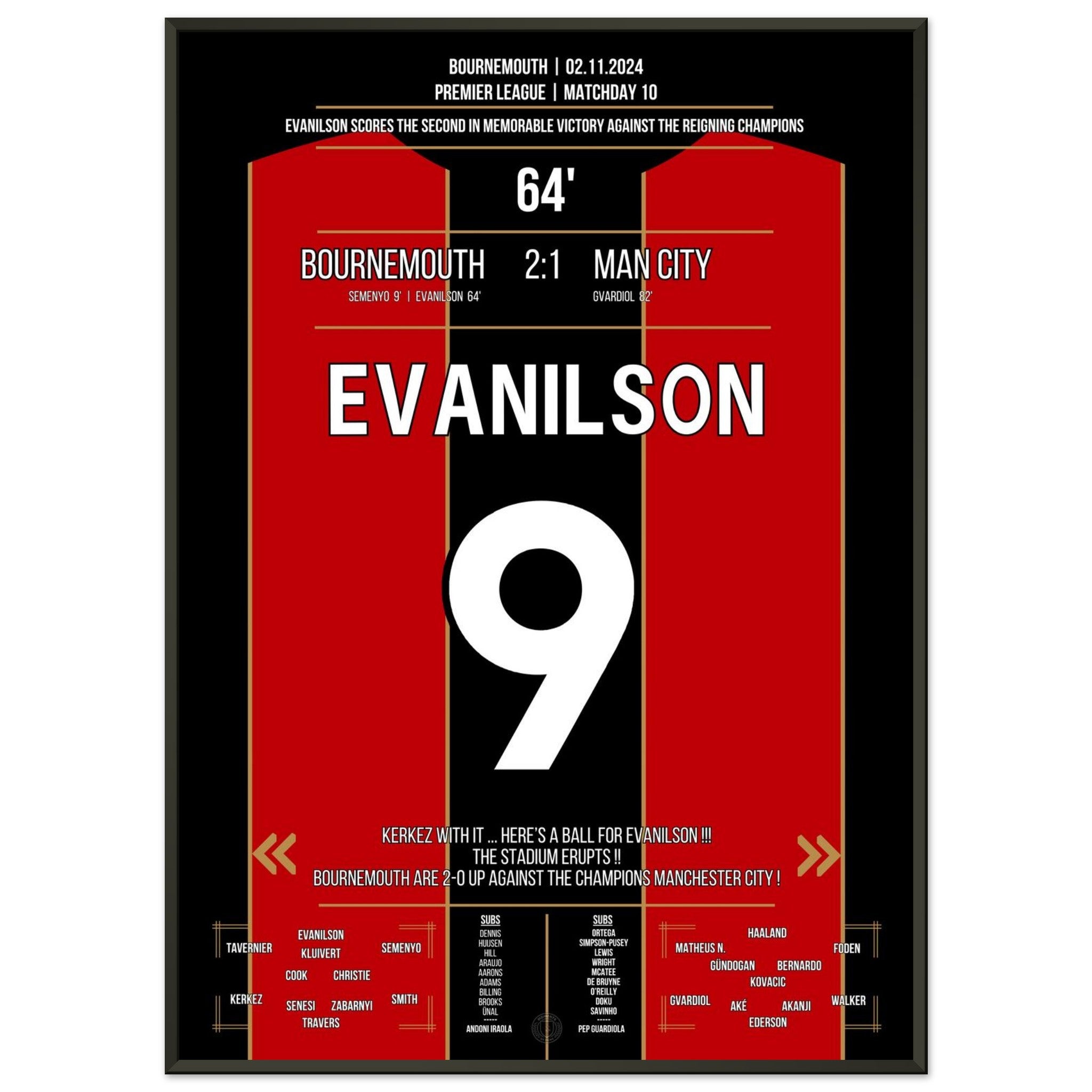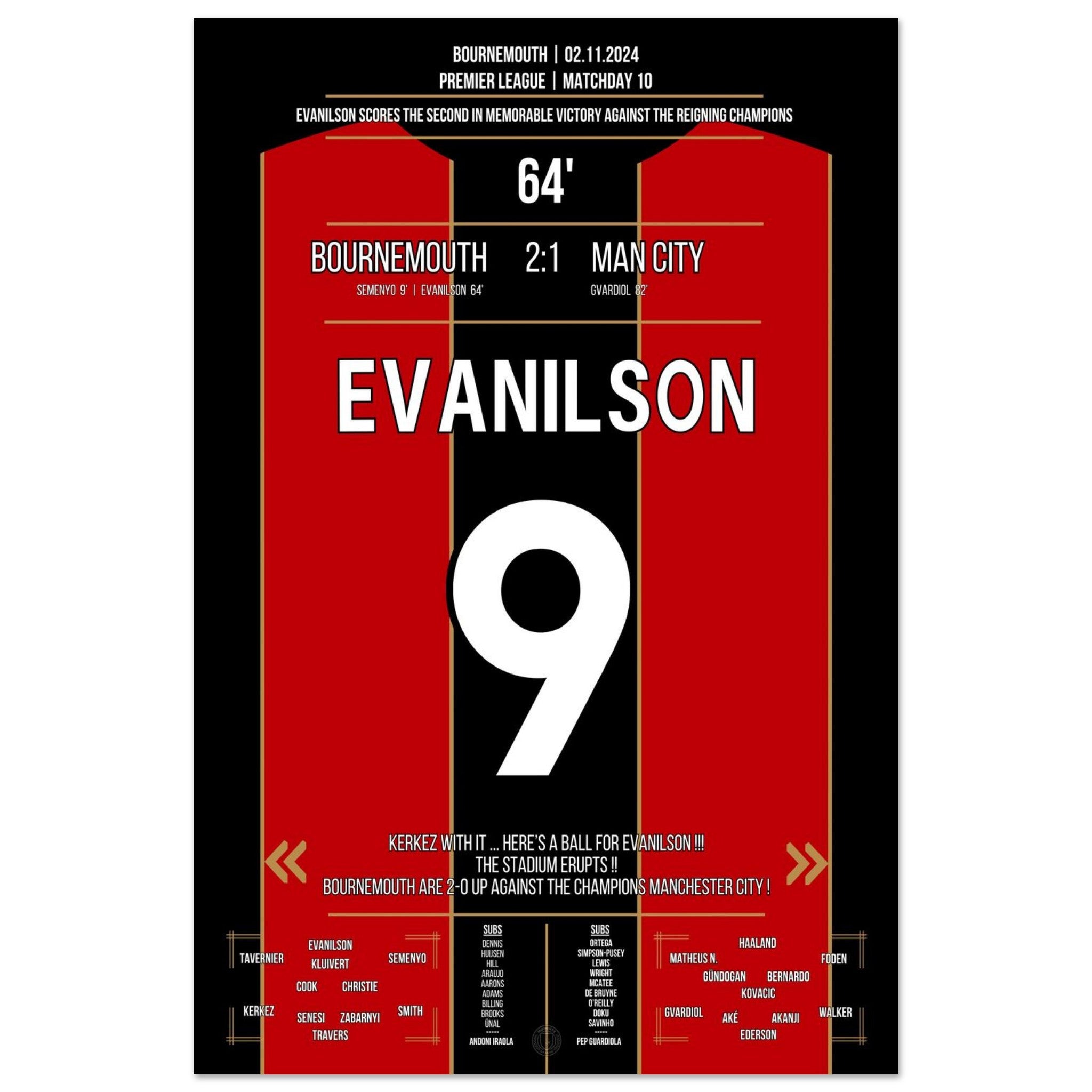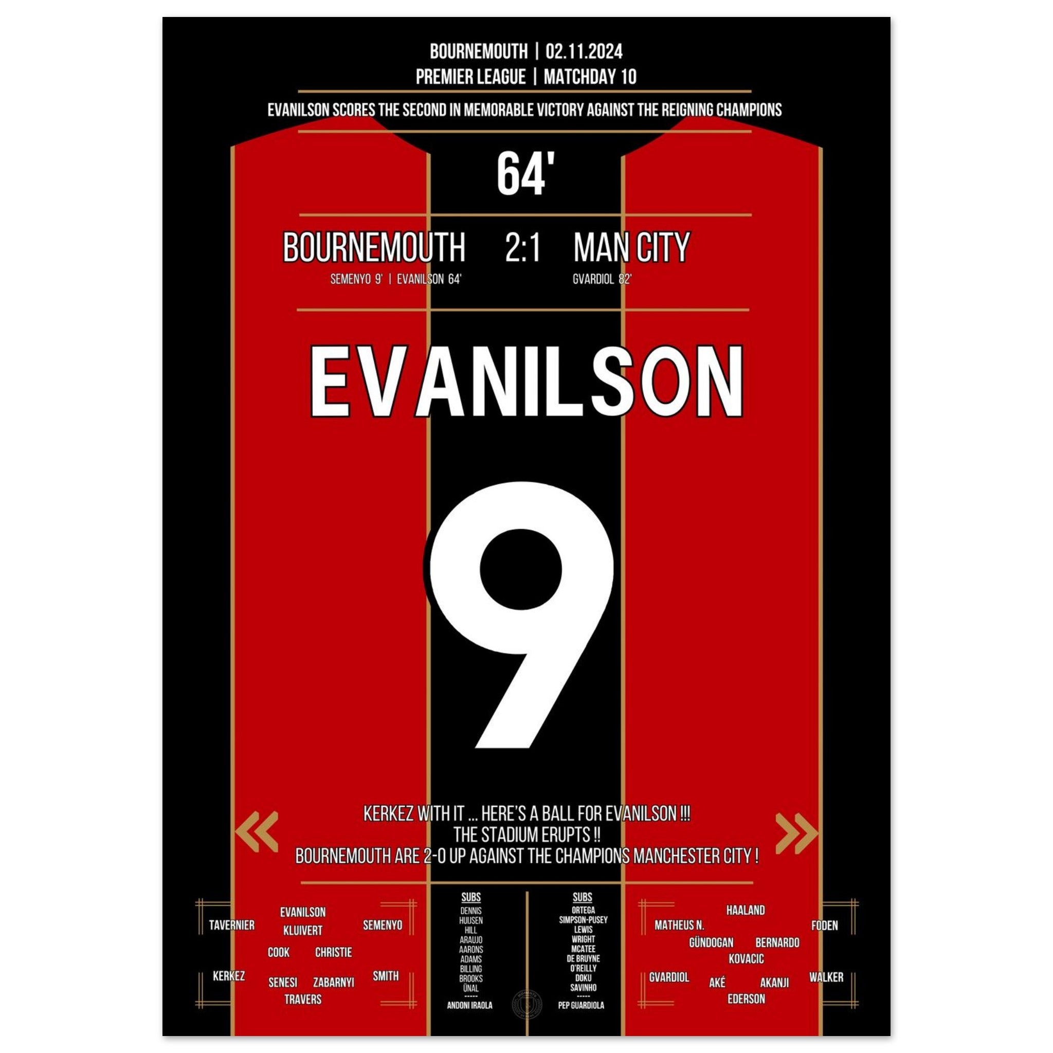 Mit einem eiskalten Abschluss in der 64. Minute sorgt Evanilson für die Sensation an der Südküste: Bournemouth schlägt City mit 2:1 – und schreibt Premier-League-Geschichte in Bournemouth.