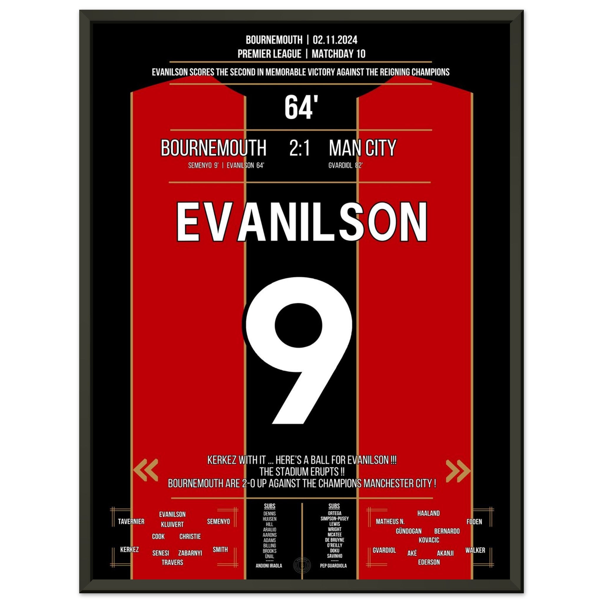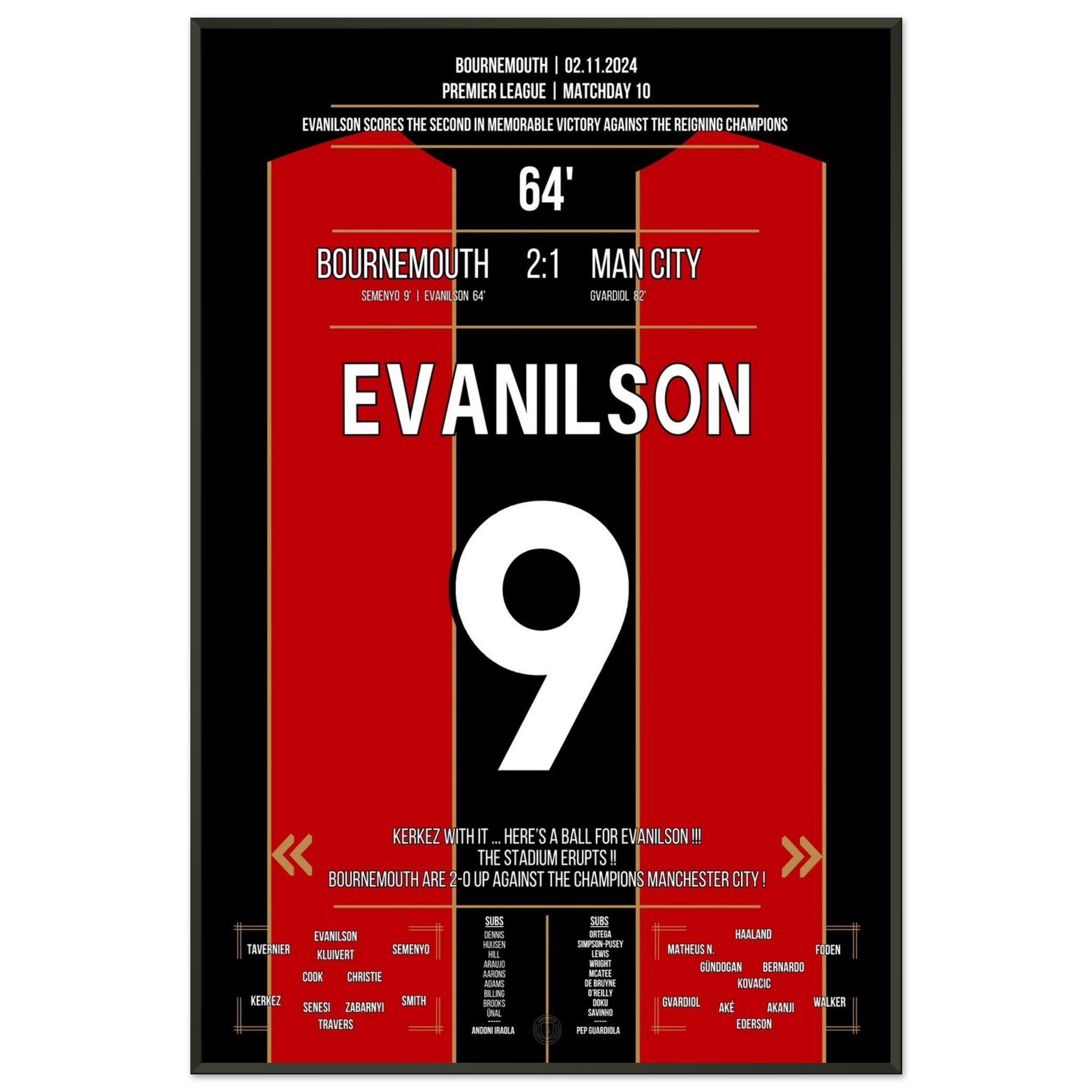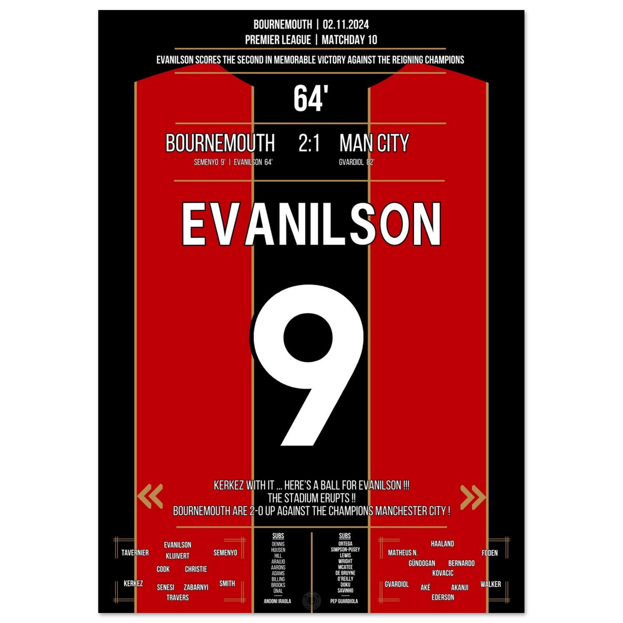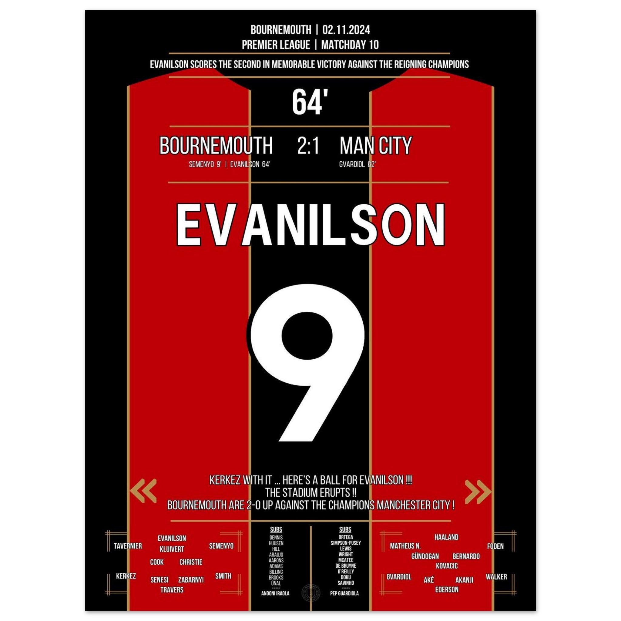 Mit einem eiskalten Abschluss in der 64. Minute sorgt Evanilson für die Sensation an der Südküste: Bournemouth schlägt City mit 2:1 – und schreibt Premier-League-Geschichte in Bournemouth.