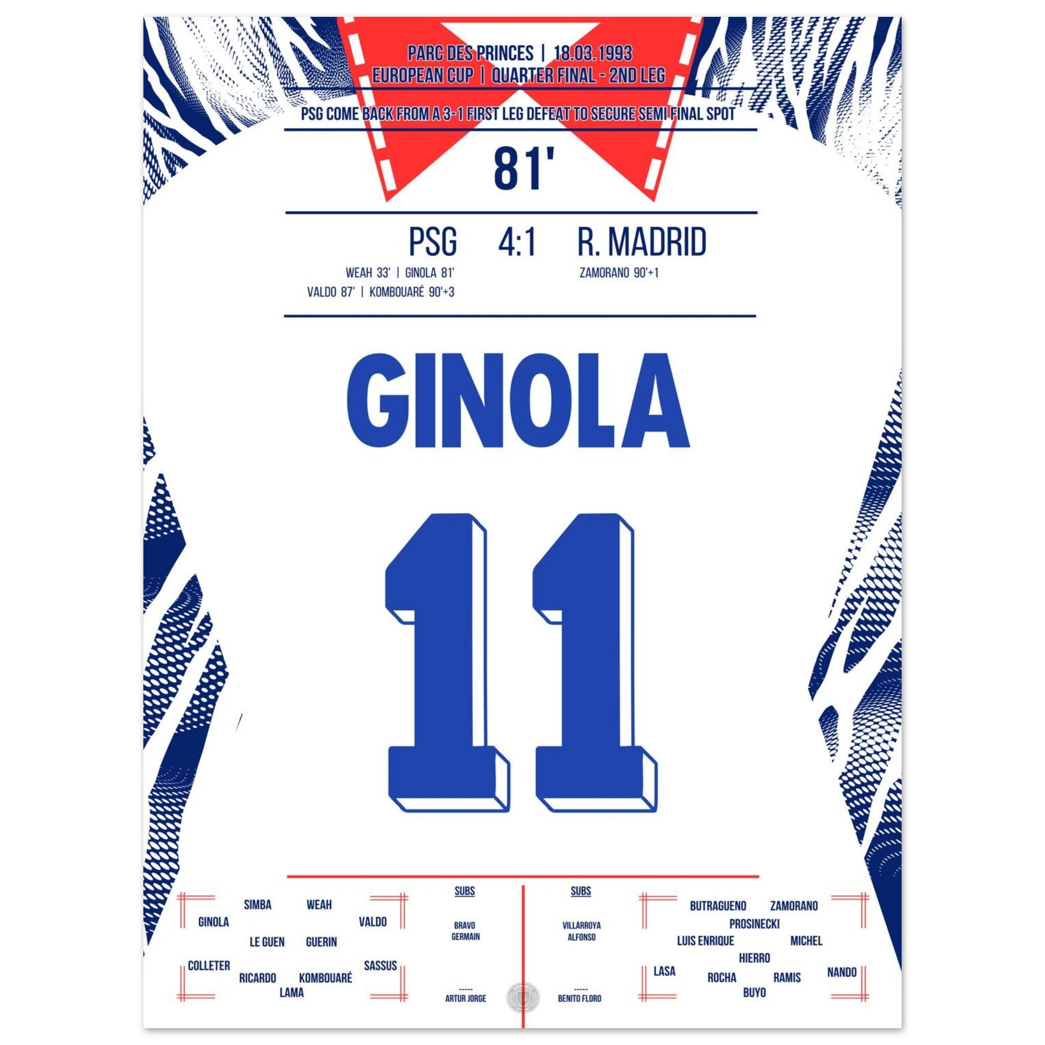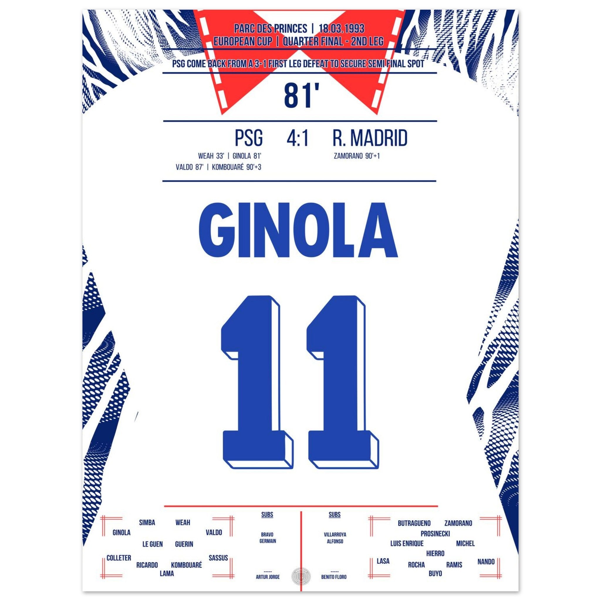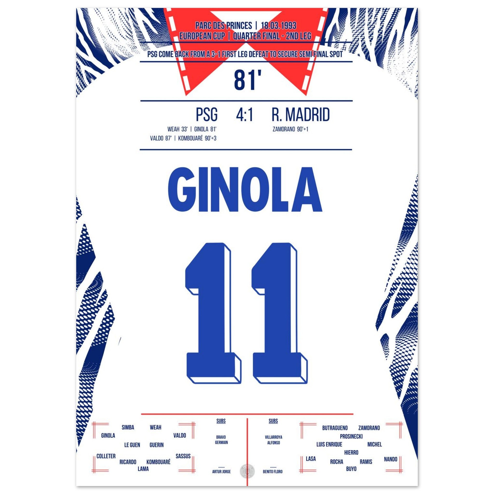 David Ginola glänzt beim legendären 4:1-Sieg von Paris gegen Real im Europapokal Viertelfinal-Rückspiel. Mit Tempo, Technik und einem Traumtor bringt er PSG auf Kurs – der Prinzenpark bebt, Real ist raus. Eine magische Nacht und der internationale Durchbruch für „El Magnifico“.