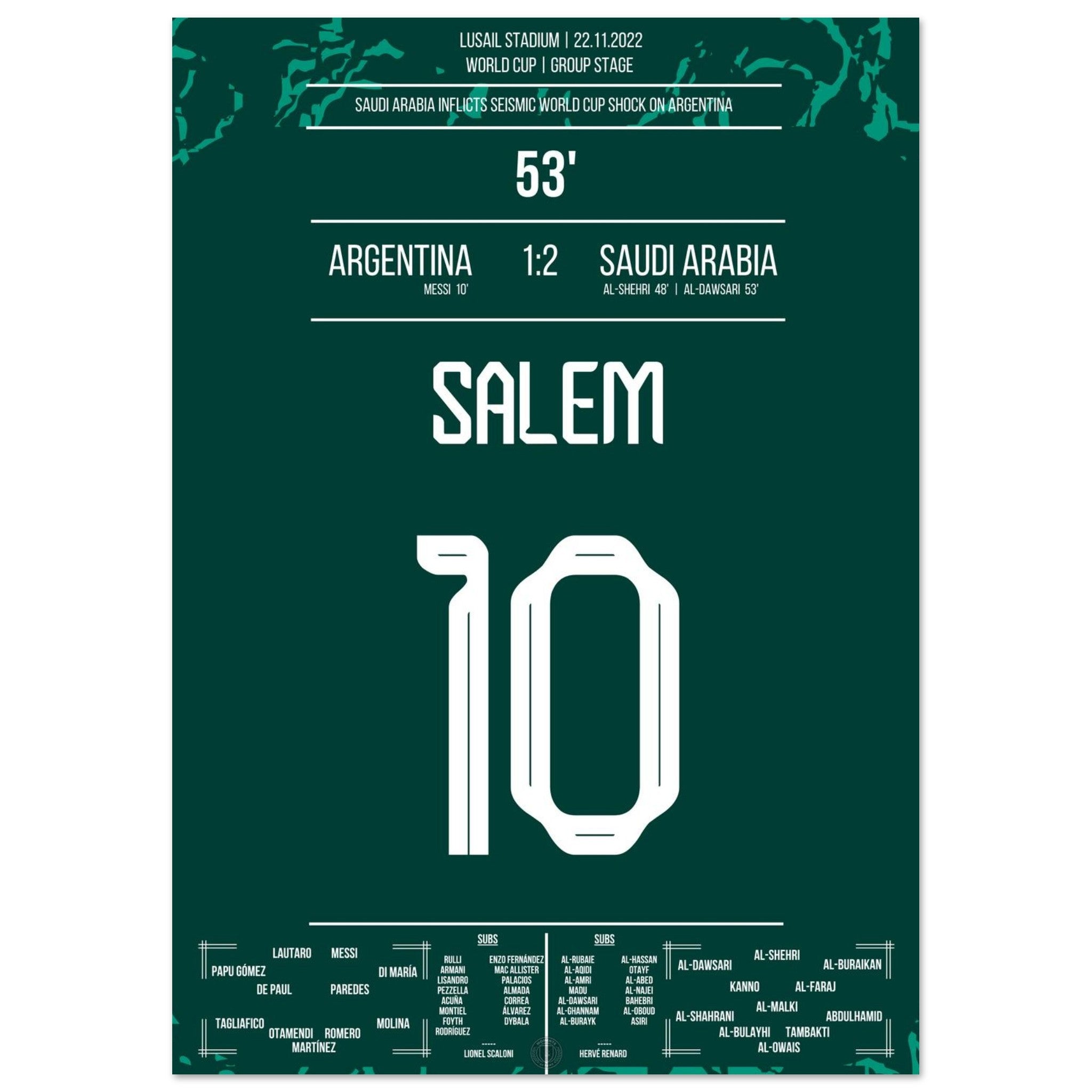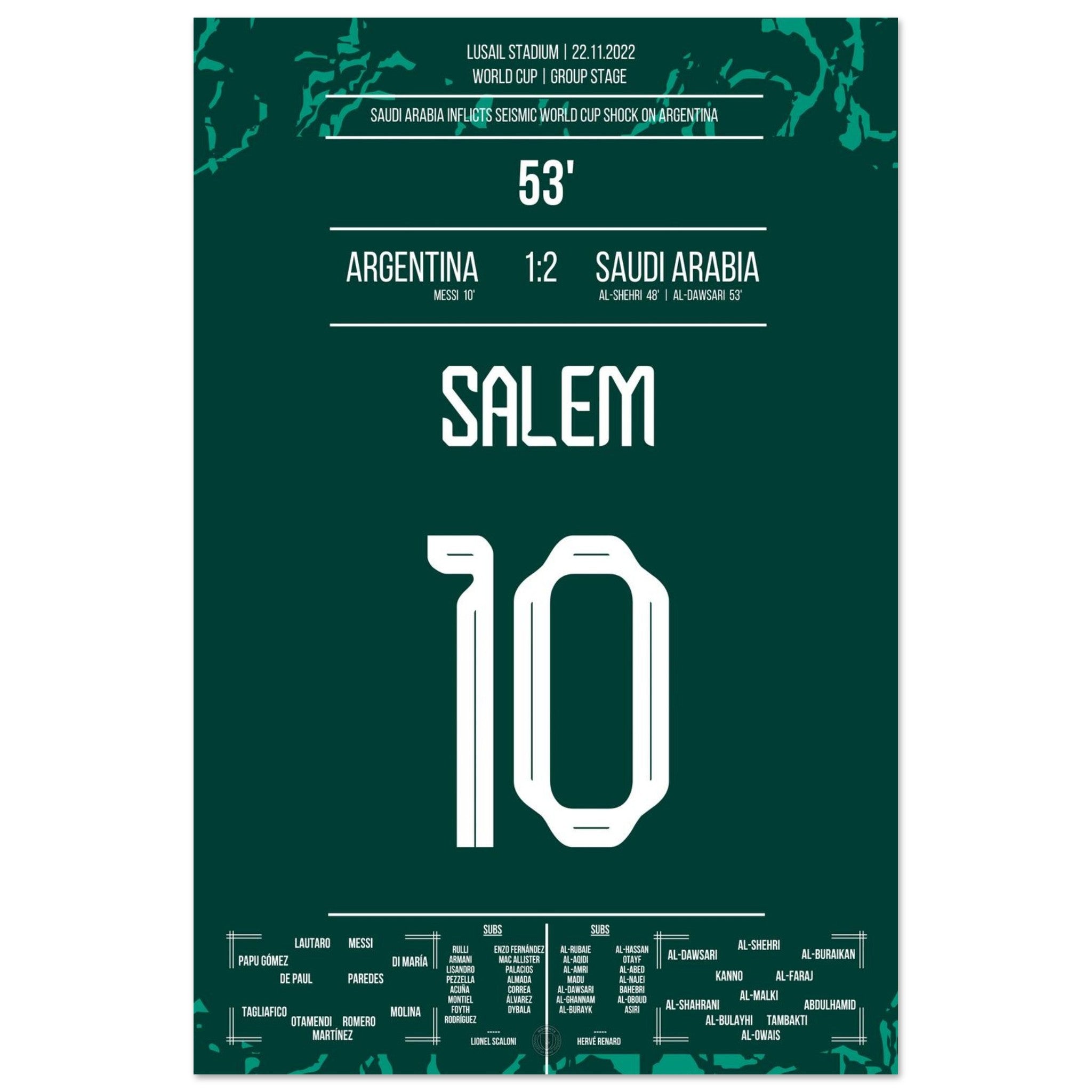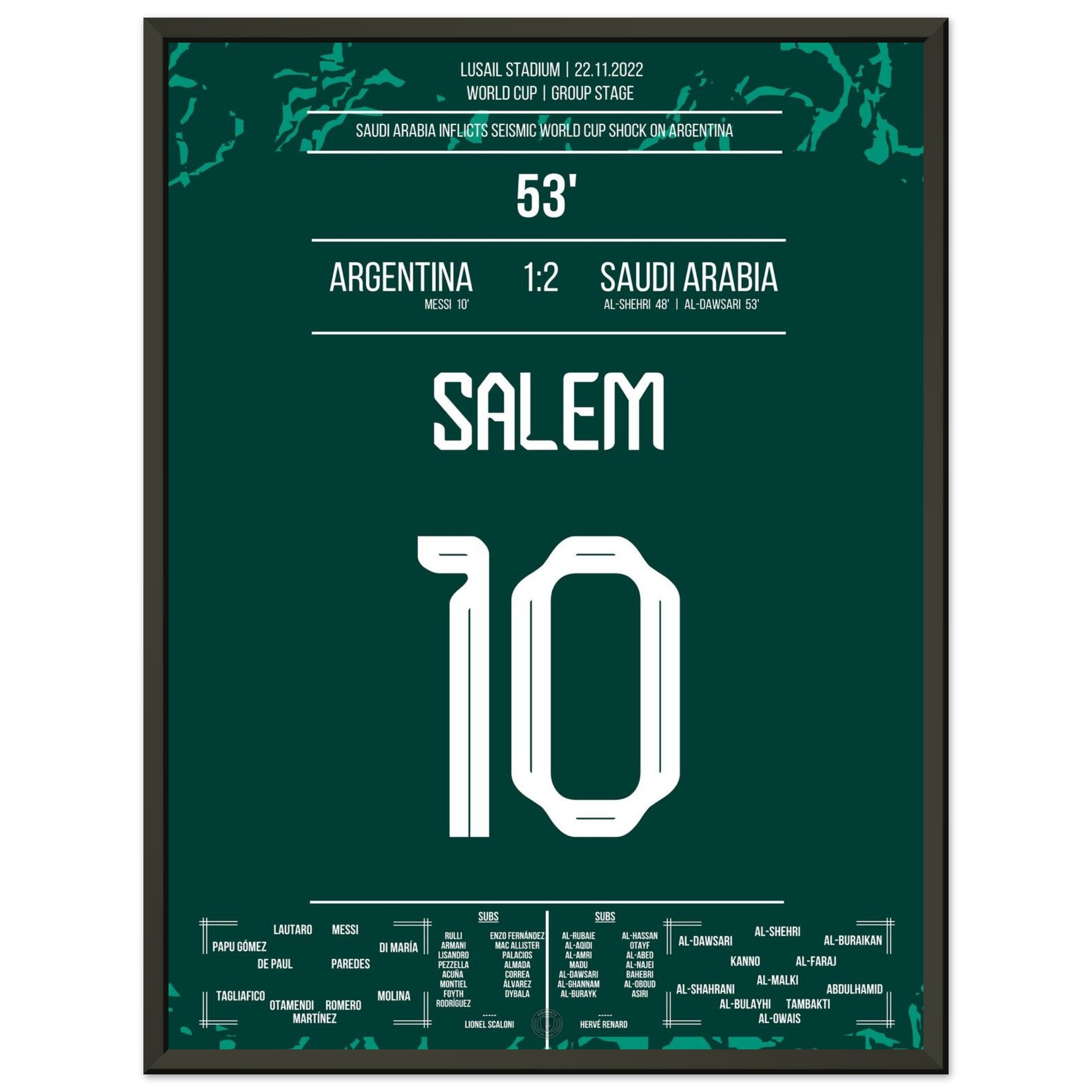 Ein Spiel, das die Fußballwelt erschütterte: Titelkandidat Argentinien geht früh durch Messi in Führung, doch Saudi-Arabien dreht das Match mit zwei Treffern kurz nach der Pause. Salem Al-Dawsari erzielt mit einem Traumtor den Sieg – pure Leidenschaft, pure Geschichte.