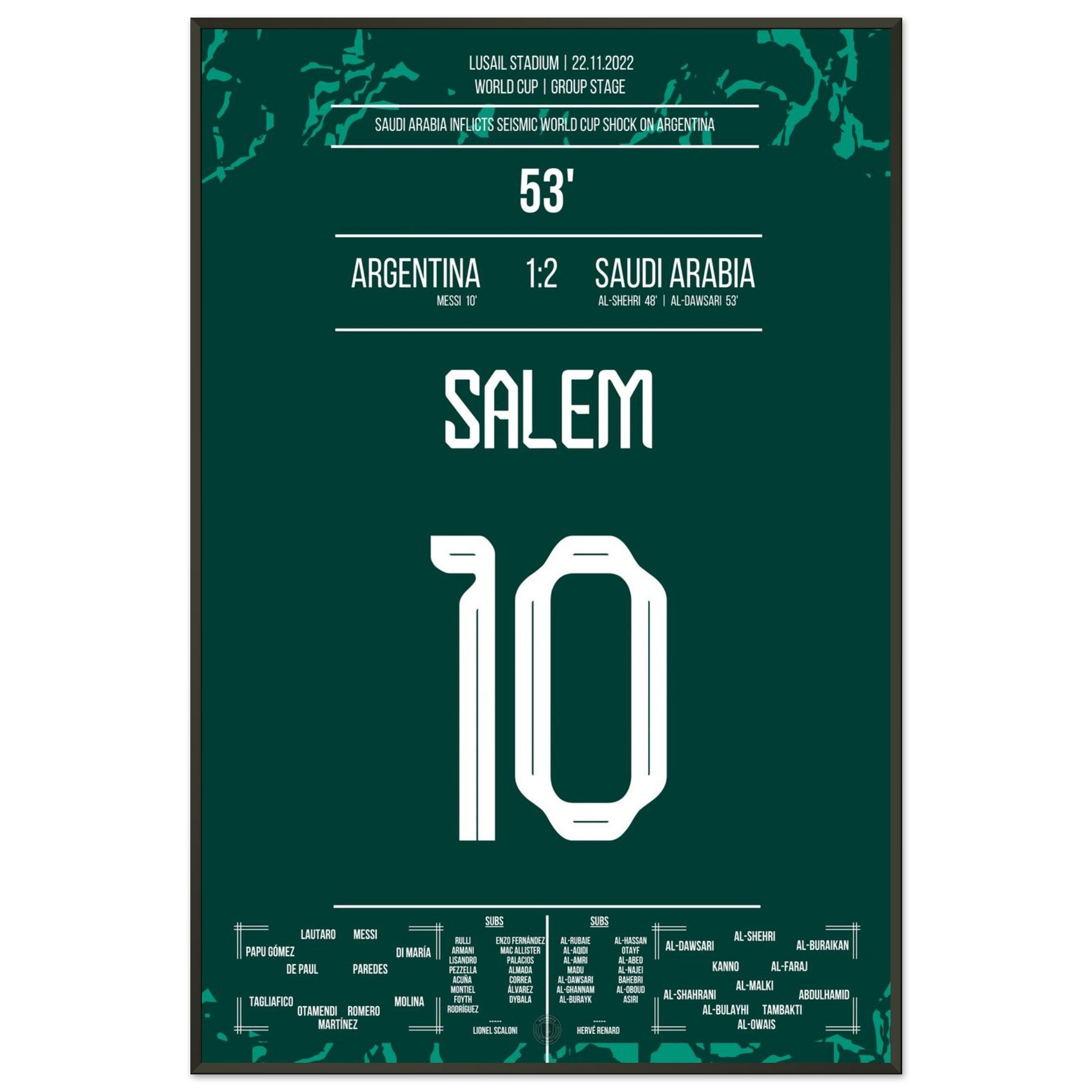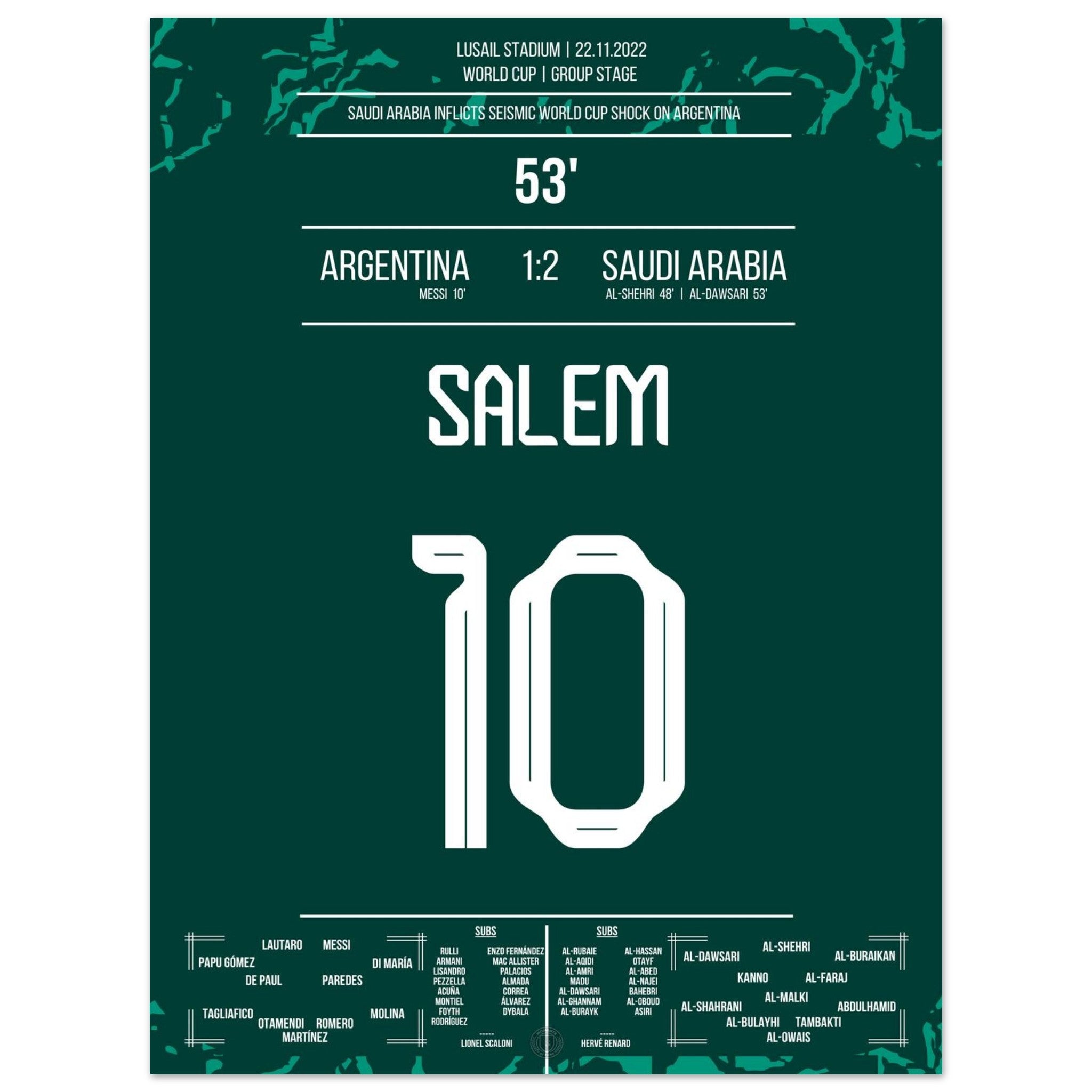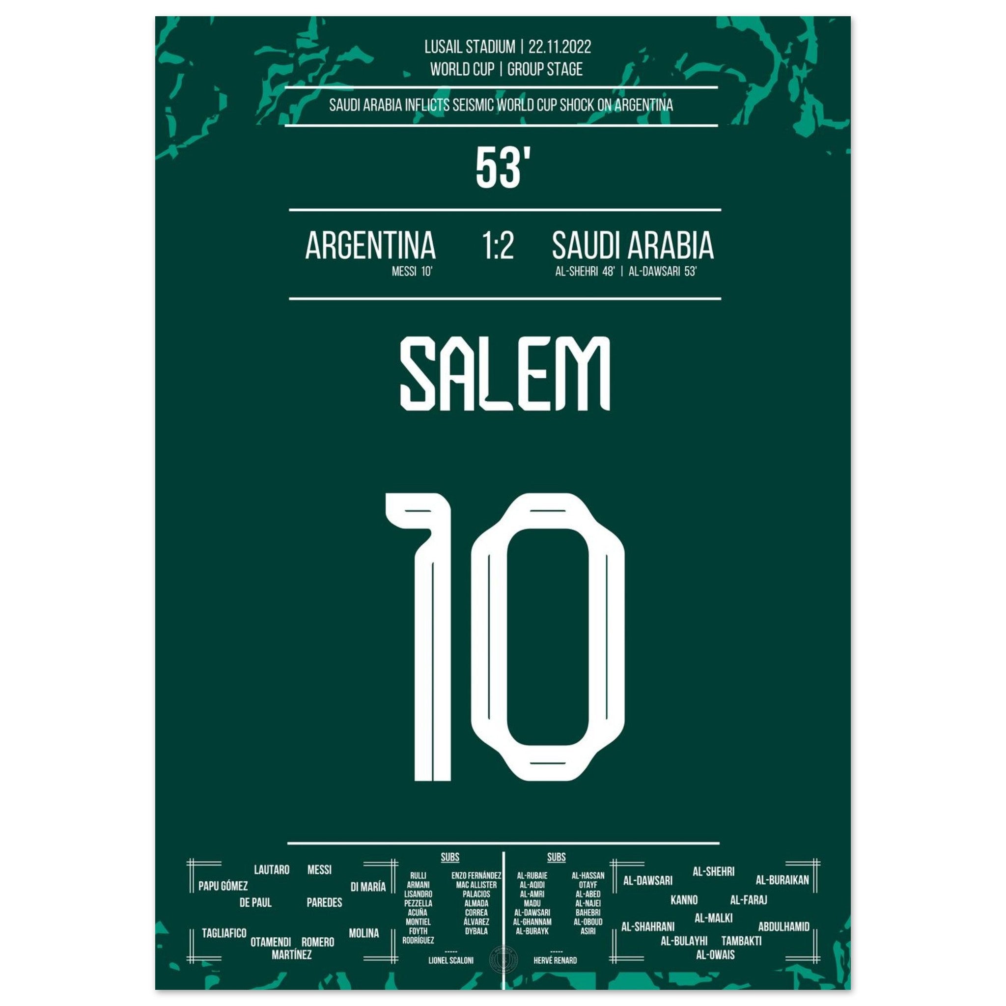 Ein Spiel, das die Fußballwelt erschütterte: Titelkandidat Argentinien geht früh durch Messi in Führung, doch Saudi-Arabien dreht das Match mit zwei Treffern kurz nach der Pause. Salem Al-Dawsari erzielt mit einem Traumtor den Sieg – pure Leidenschaft, pure Geschichte.