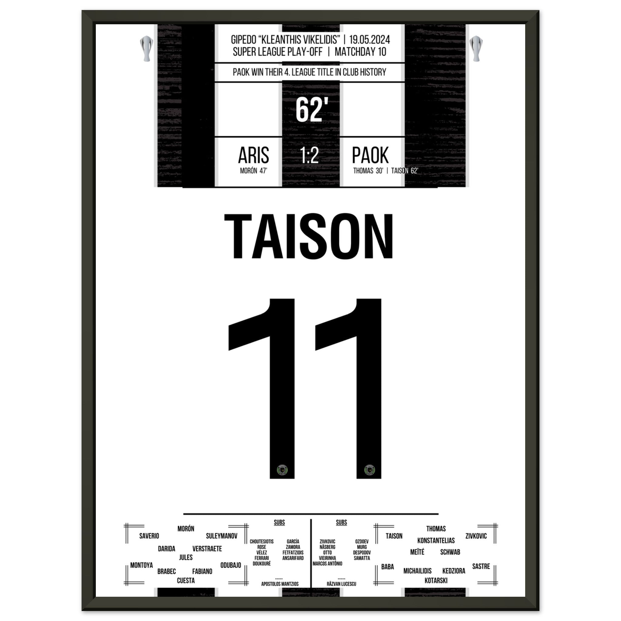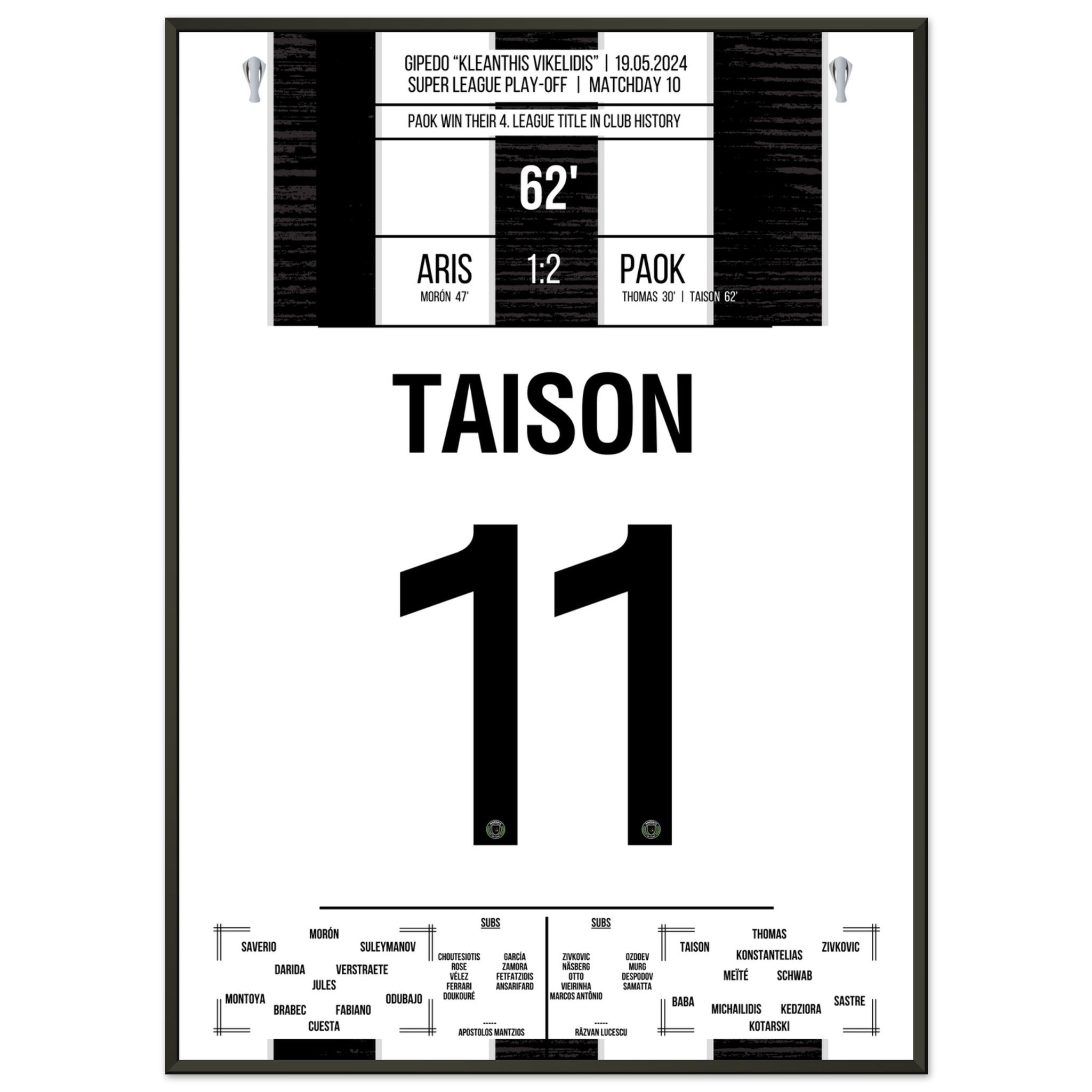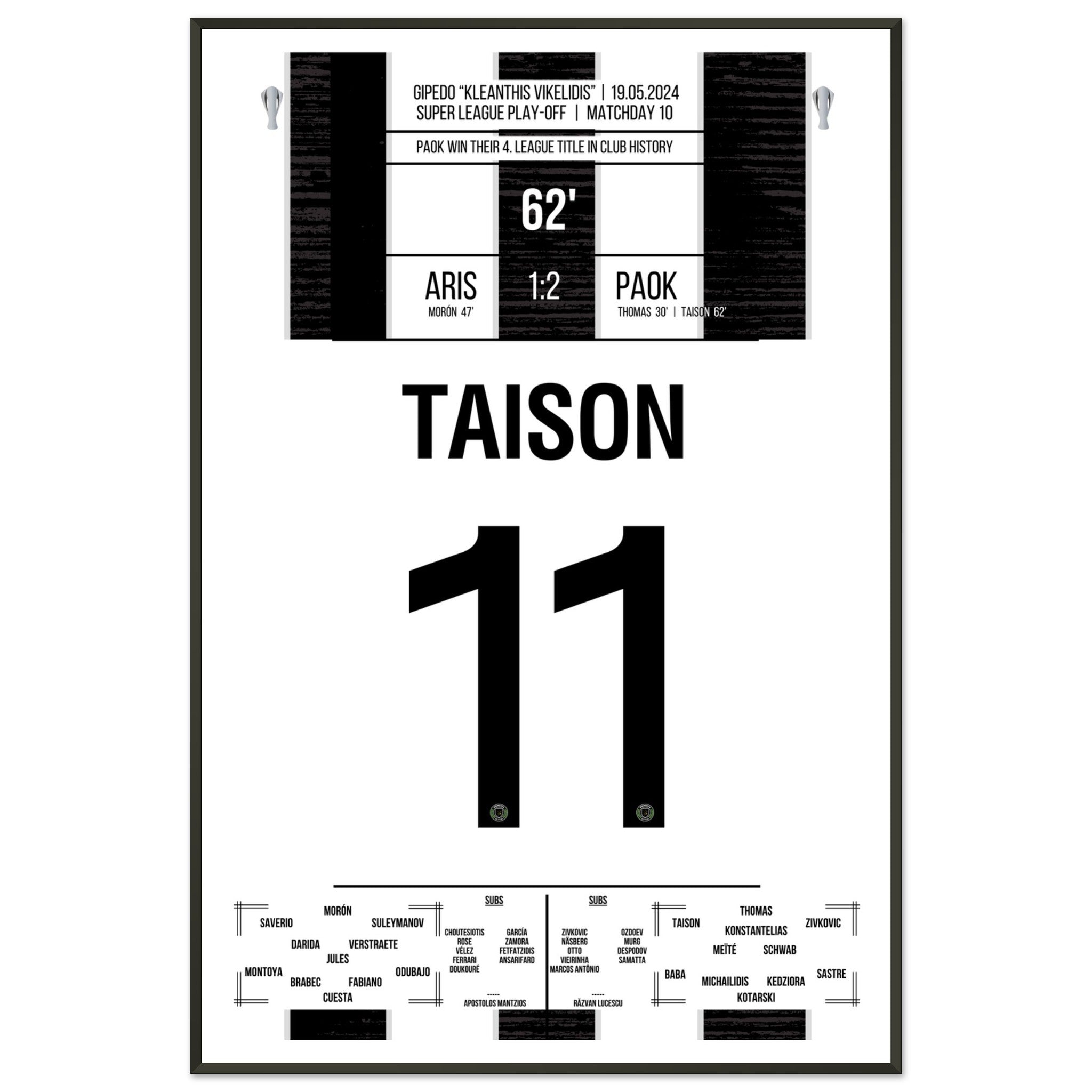 Hier kommt unser Premium-Druck dieses unvergesslichen Fußballmoments für das ultimative Fan-Erlebnis. Gedruckt auf schwerem, seidenmattem Premium-Papier, glänzt dieses Kunstwerk mit verstärkten Farben und einem subtilen Glanz, der jedes Detail zum Vorschein bringt.