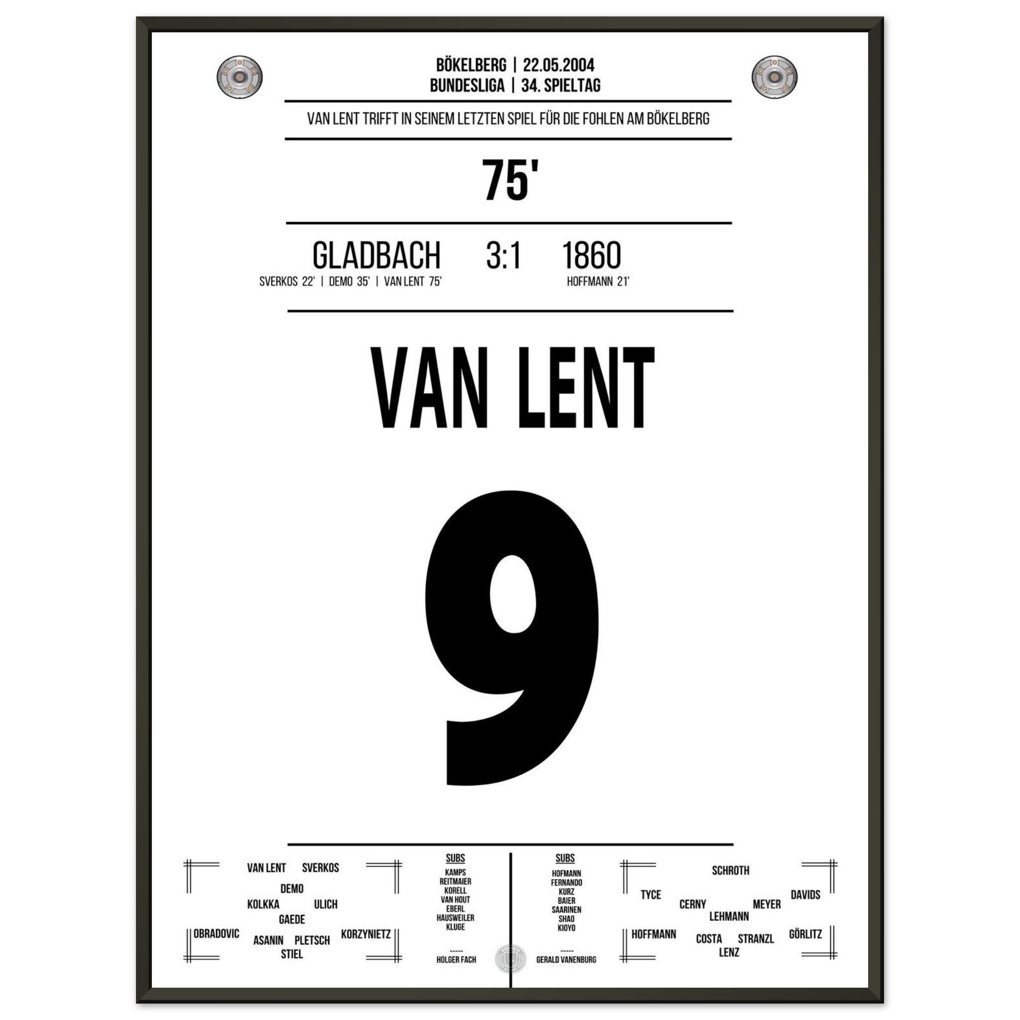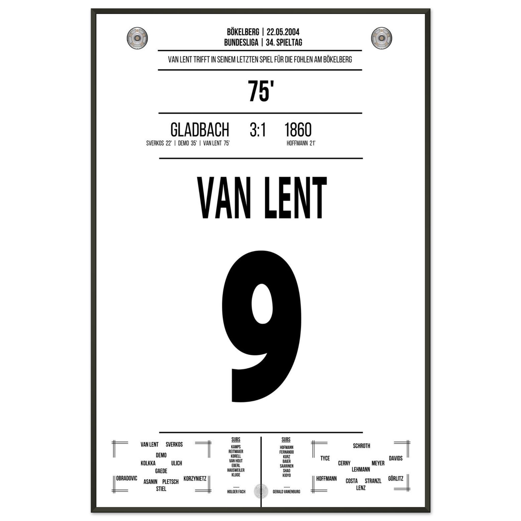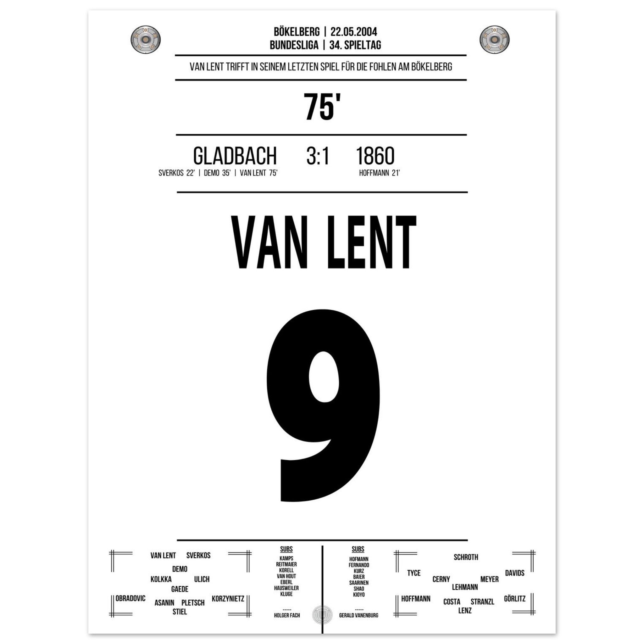 Am letzten Spieltag der Saison trifft Arie van Lent beim 3:1-Sieg von Gladbach doppelt – darunter der entscheidende Treffer zum 2:1. Mit seinem Tor stößt er 1860 in die Zweitklassigkeit. Ein bitterer Tag für die Löwen – und ein denkwürdiger für die Borussia.