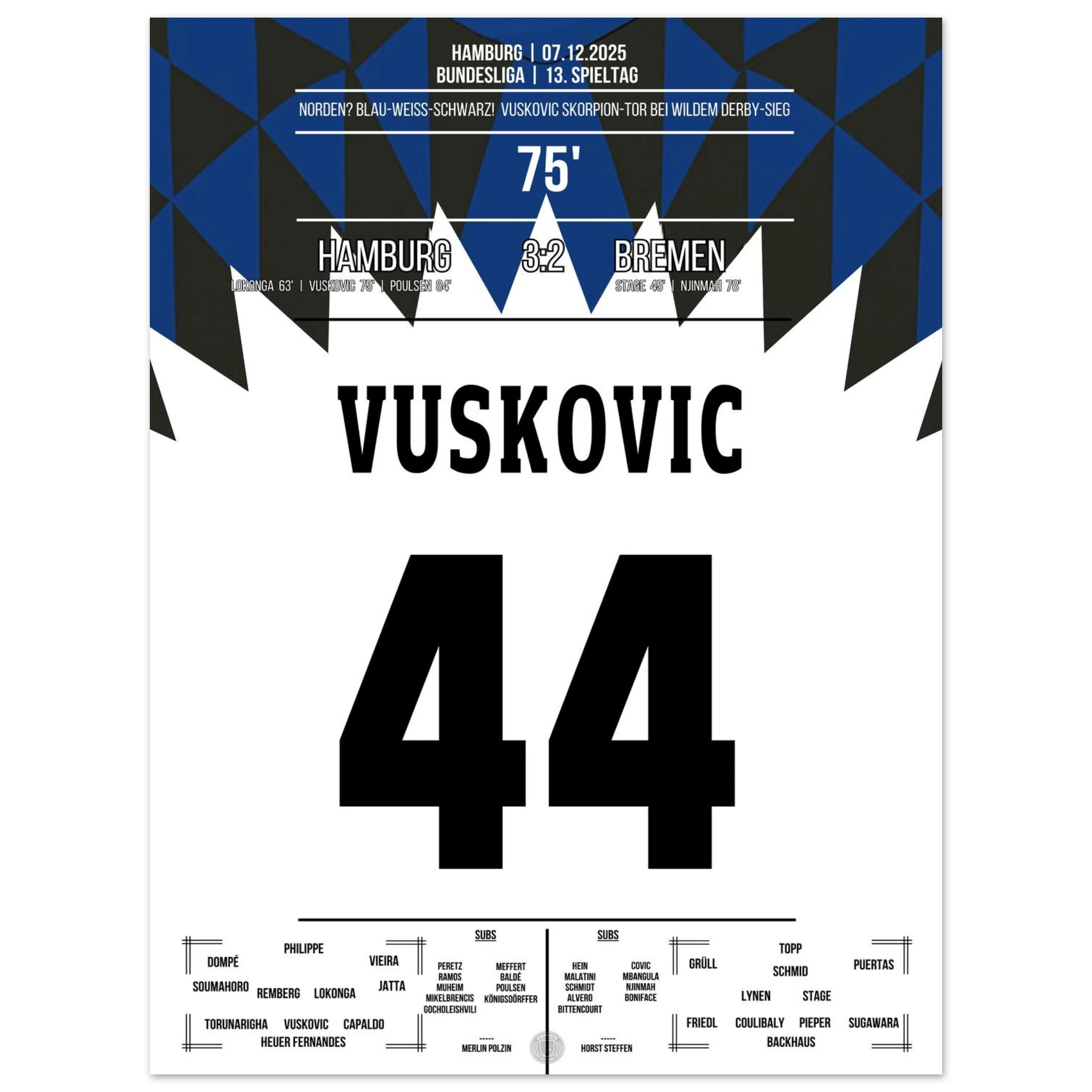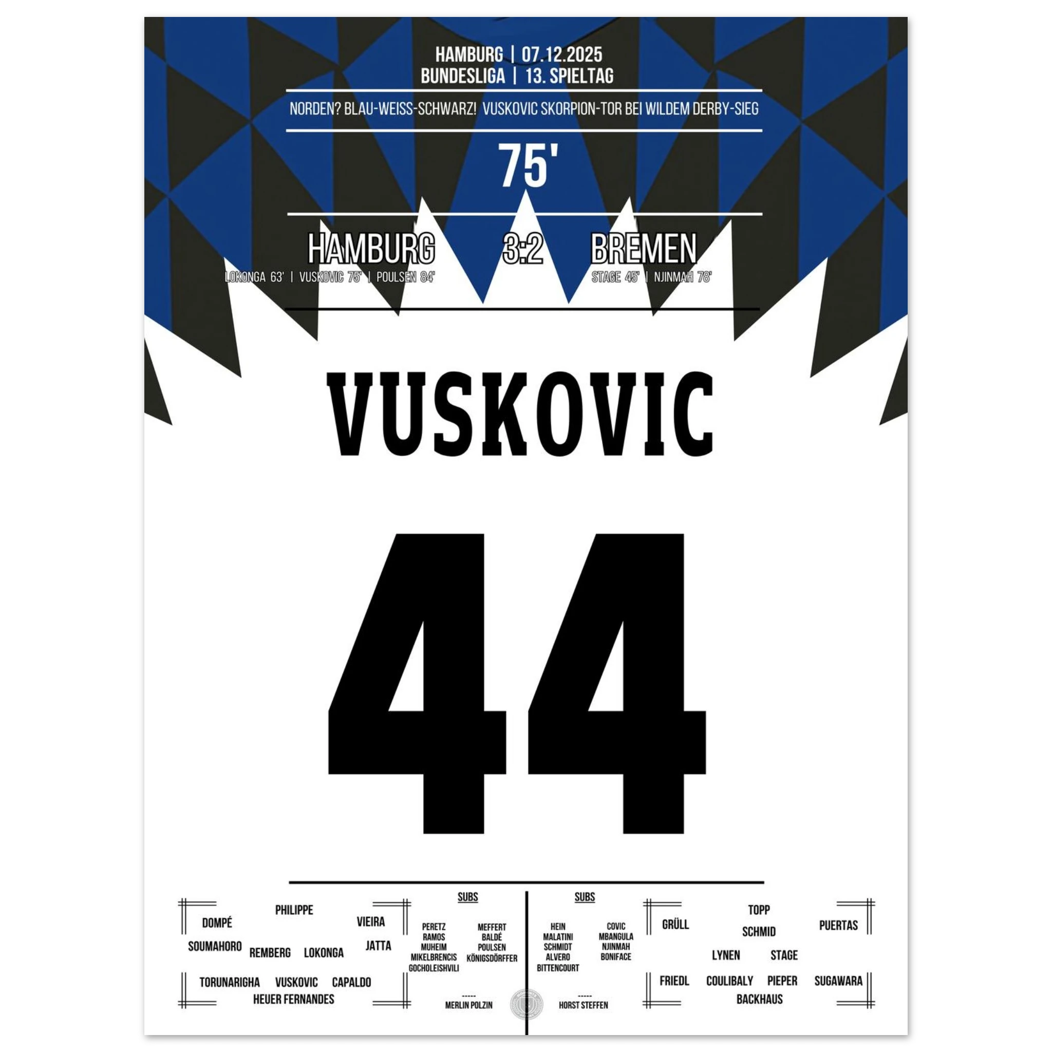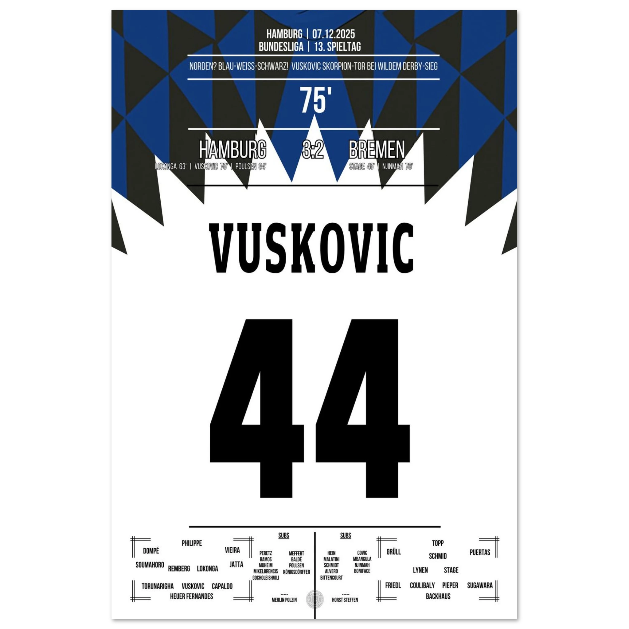 Vuskovic Skorpion-Tor beim Sieg im Nordderby