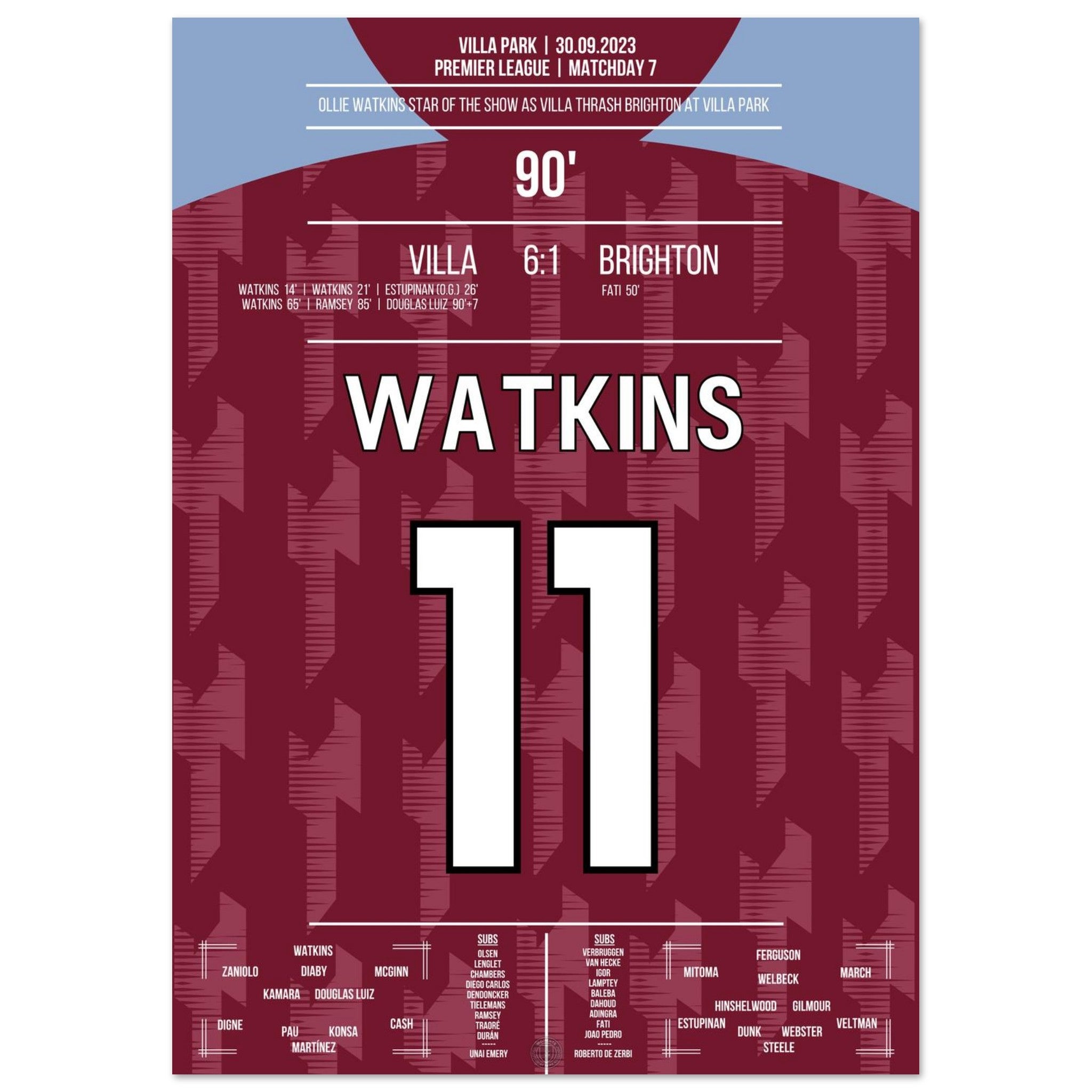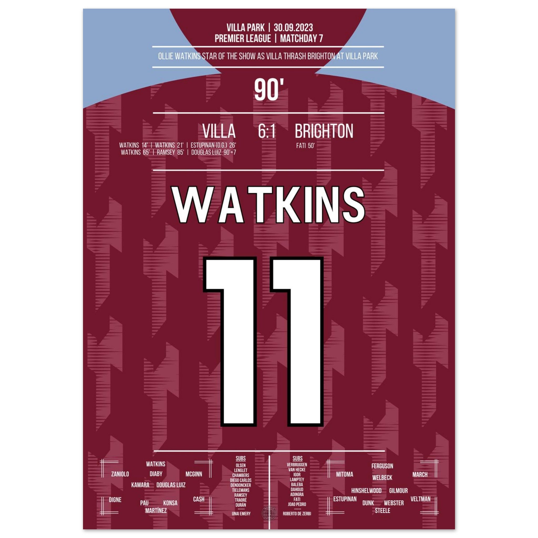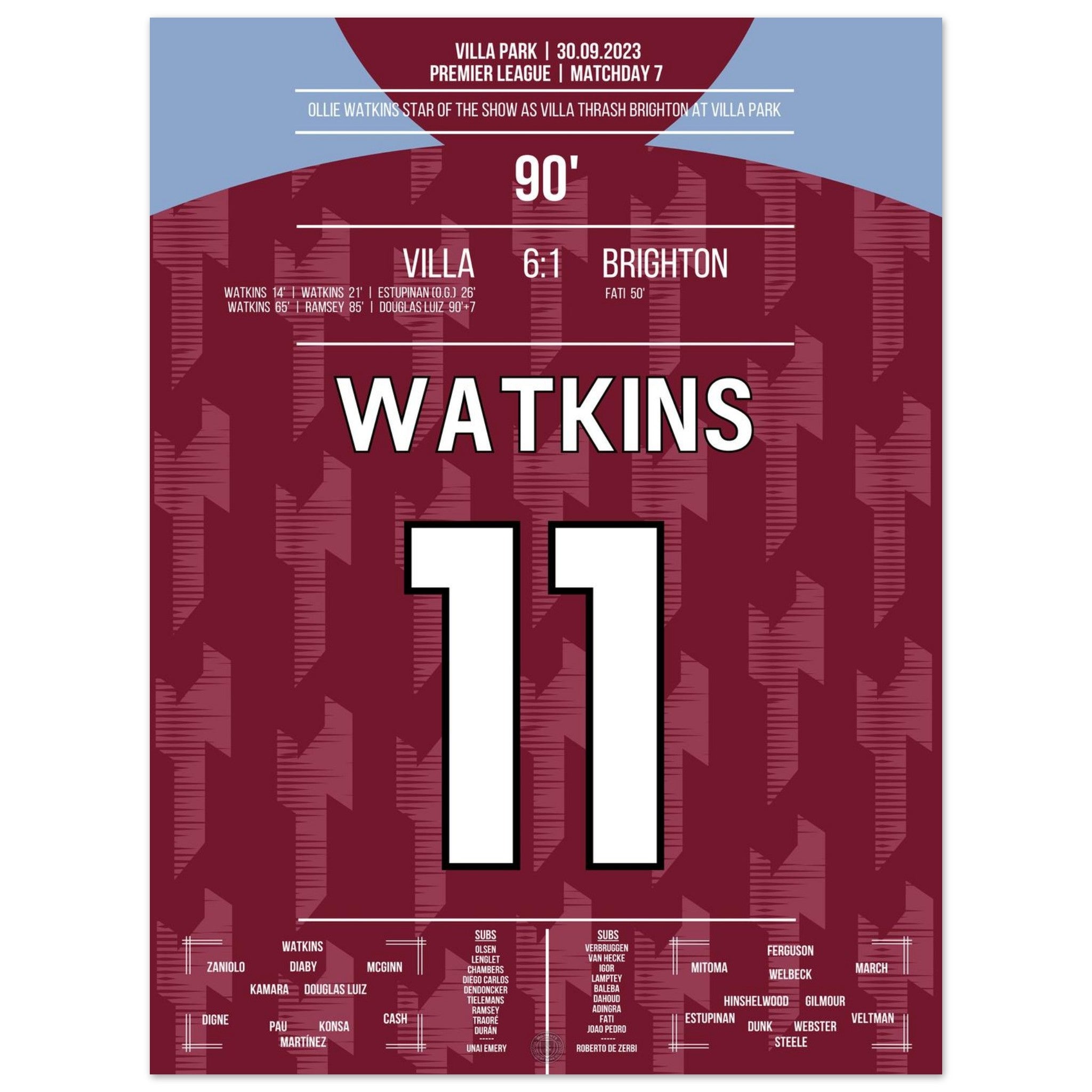 Watkins Star-Performance beim 6-1 Sieg gegen Brighton